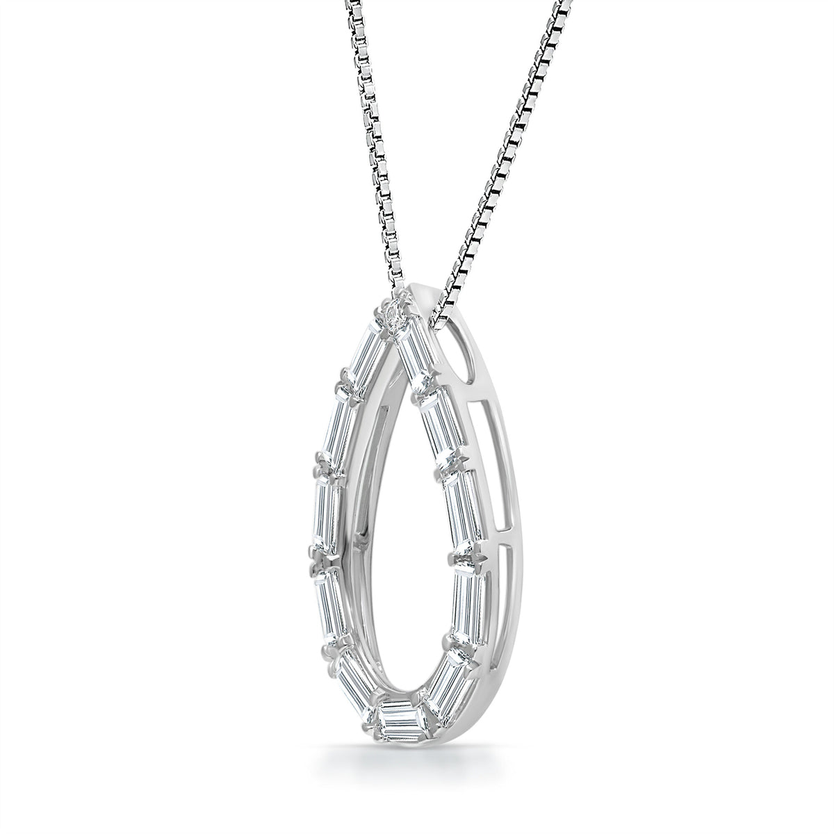 Made in 10K white gold with one round brilliant cut lab-grown diamond and eleven baguette lab-grown diamonds totaling approximately 1/2 carat total weight. Includes a delicate bail for chain attachment.