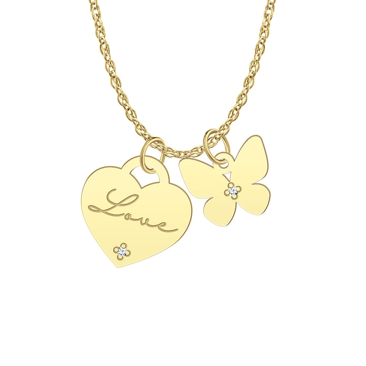 Two-Piece Love Charm Necklace with Diamond Accents in 10K Yellow Gold