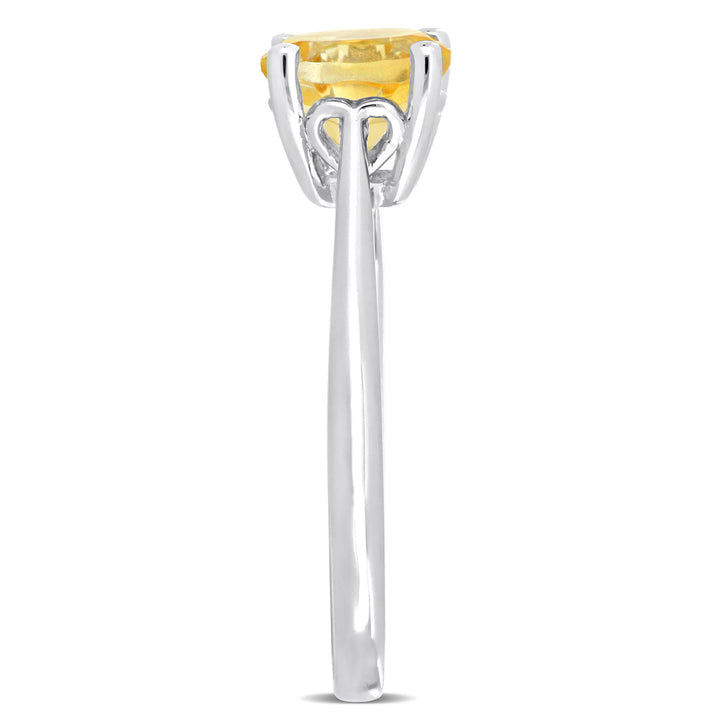 Sterling silver ring with one round citrine measuring 7 millimeters. Smooth polished band designed for comfortable wear.