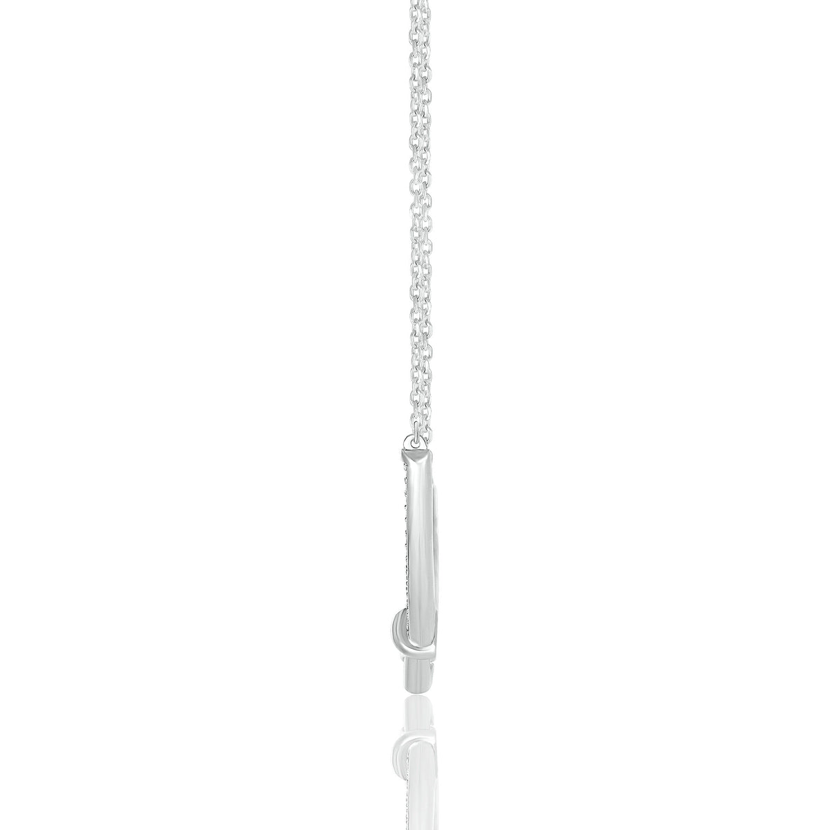 Crafted in sterling silver with 35 round single cut diamonds totaling approximately 1/5 carat total weight. Chain length not specified.