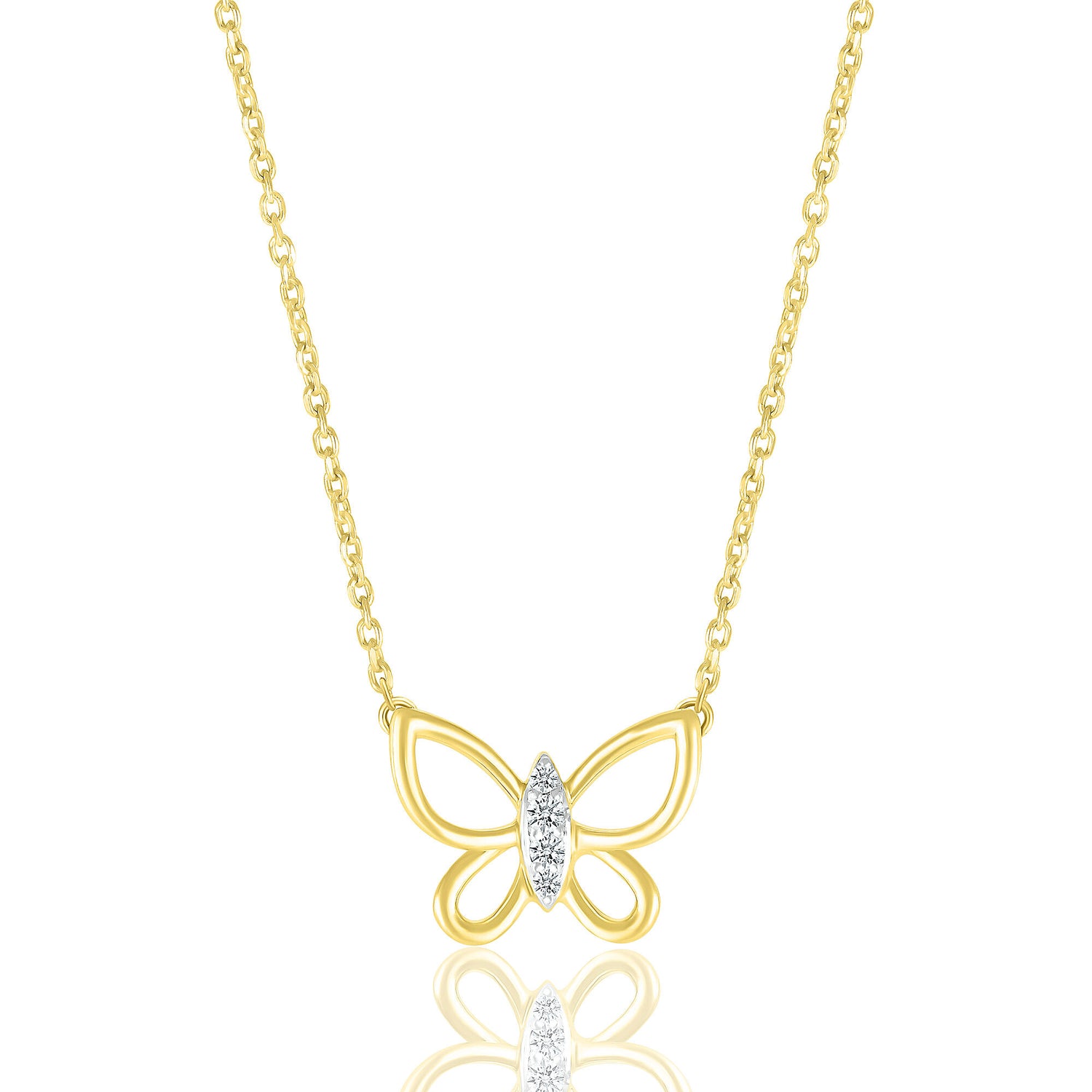 Diamond Accent Butterfly Necklace in 10K Yellow Gold