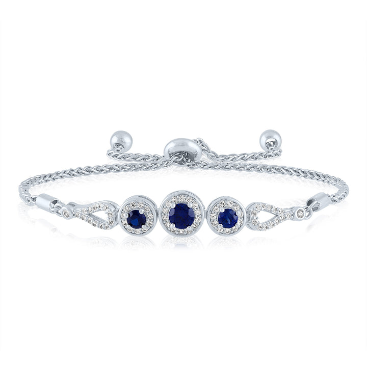 Lab-Created Blue Sapphire & Lab-Created White Sapphire Bolo Bracelet in Sterling Silver