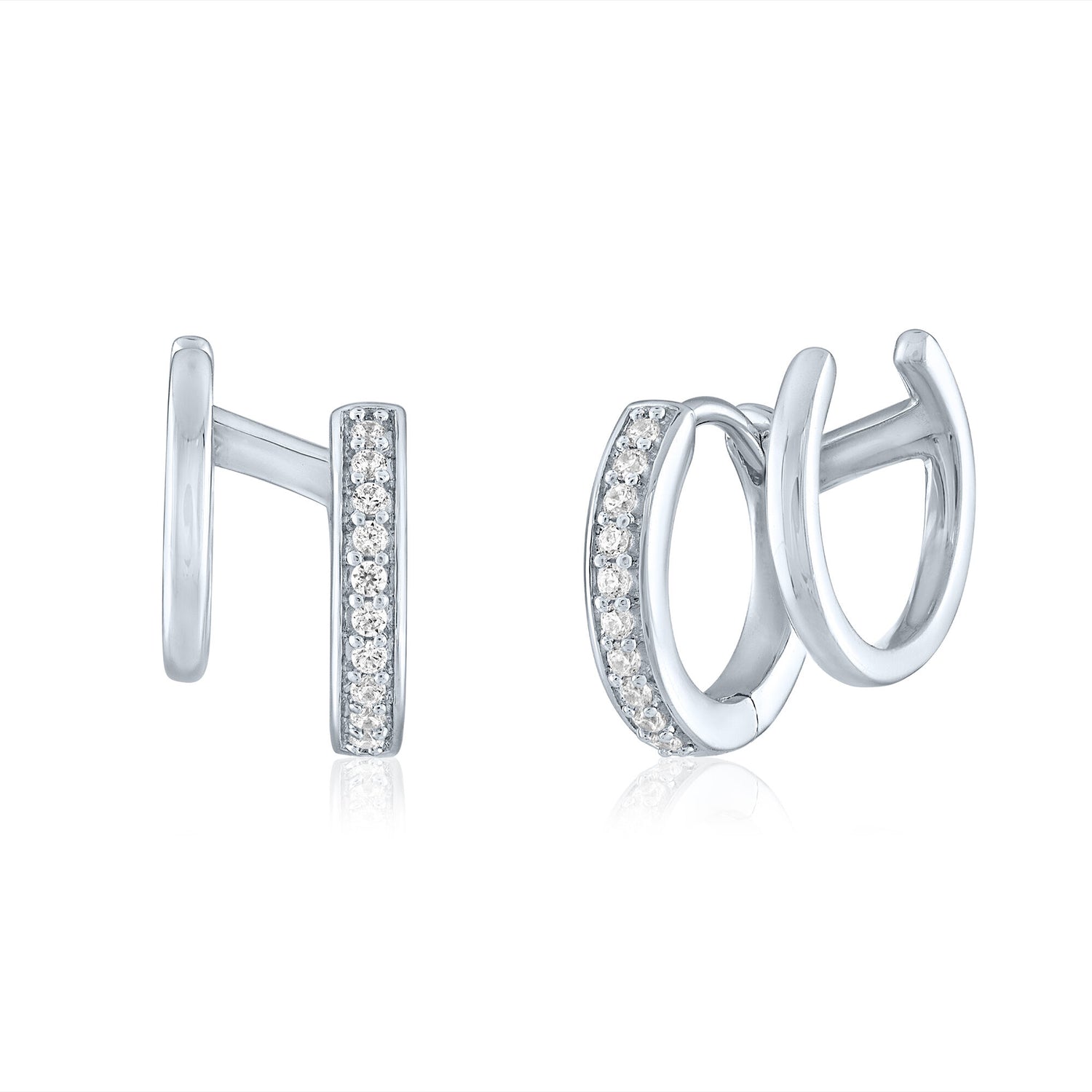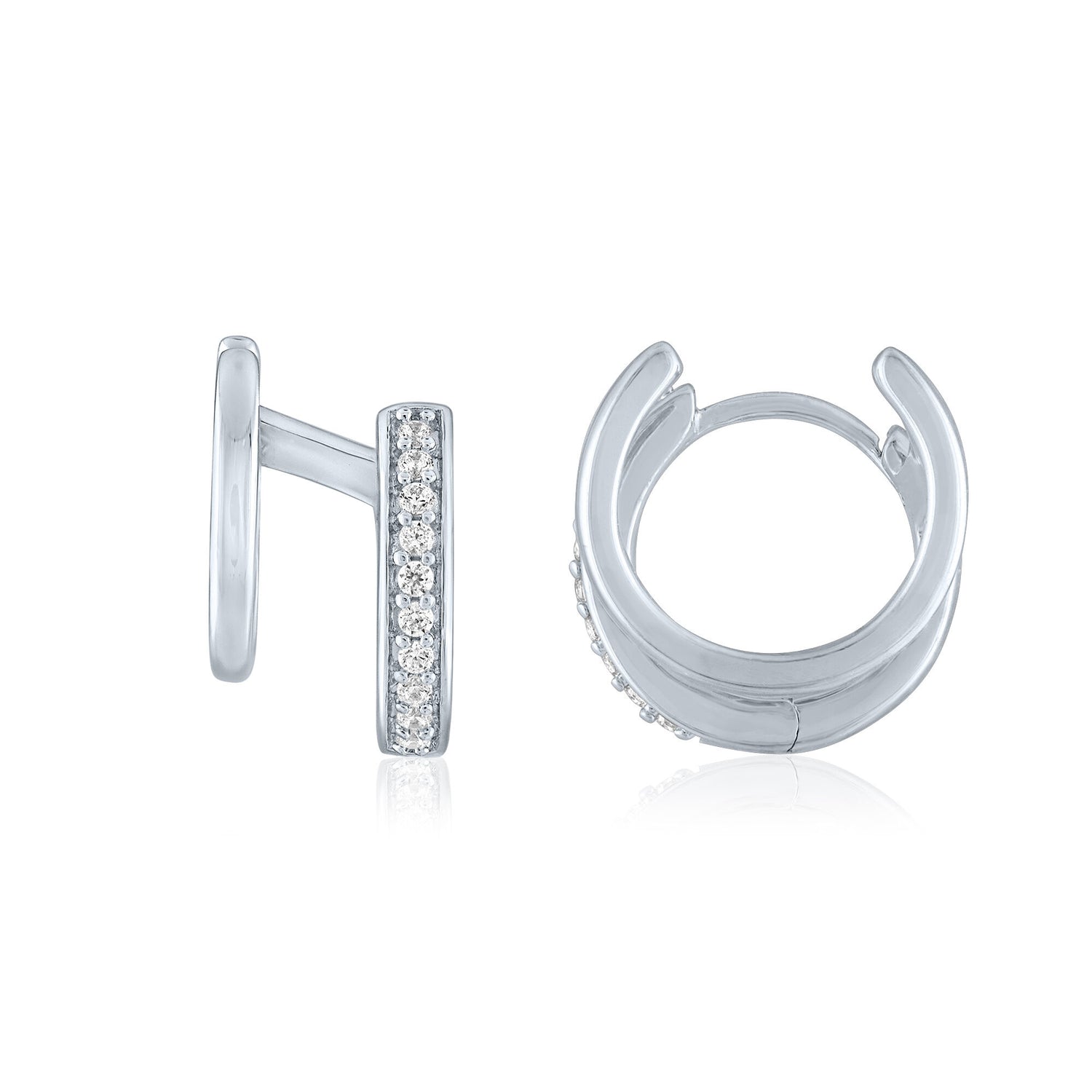 Double Hoop Huggie Earrings with Diamond Accents in Sterling Silver