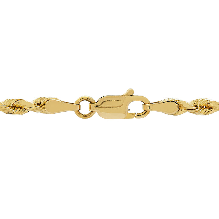 Handcrafted in 14K yellow gold, 3.1mm width, 20-inch length, glitter rope design, polished finish, secured with a spring ring clasp.