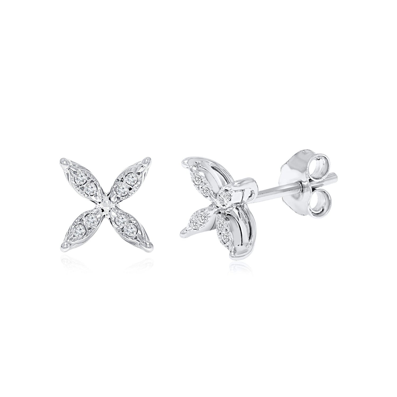 Handcrafted in polished sterling silver, featuring 16 round single-cut diamonds totaling approximately [carat weight not specified]. Classic post and friction back closure.