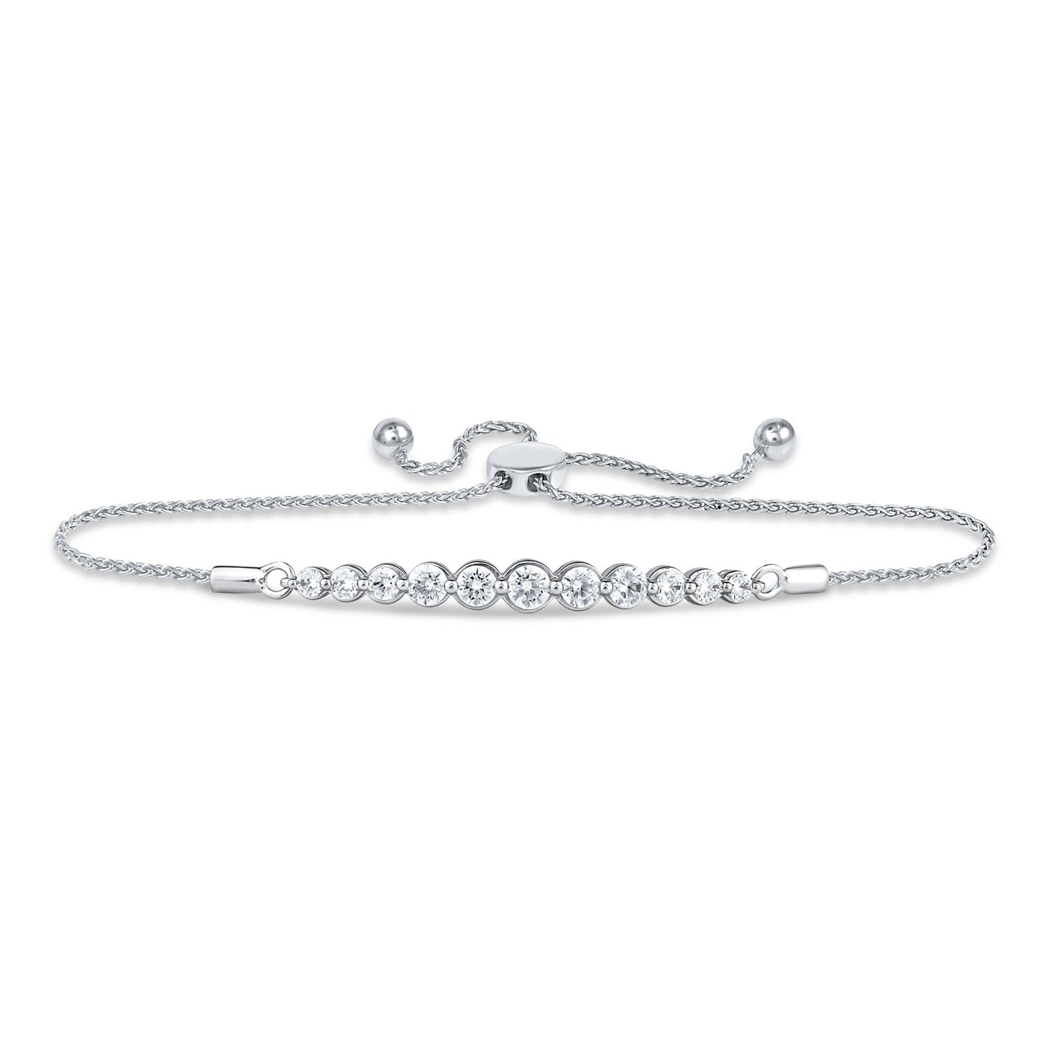 Crafted in 10K white gold, set with 11 round brilliant cut lab-grown diamonds totaling approximately 1 carat. Polished finish with adjustable bolo clasp.