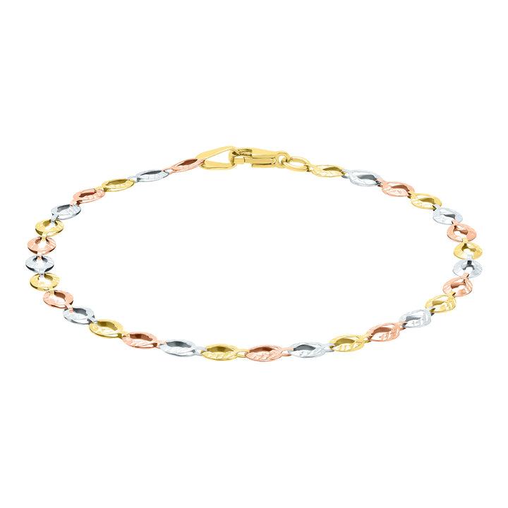 Diamond-Cut Oval Link Bracelet in 14K Yellow, White and Rose Gold, 7.5'