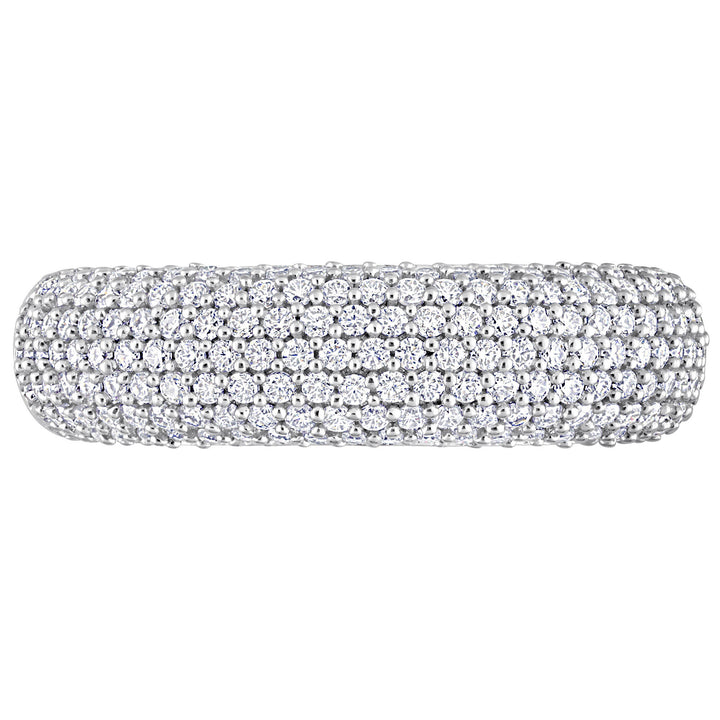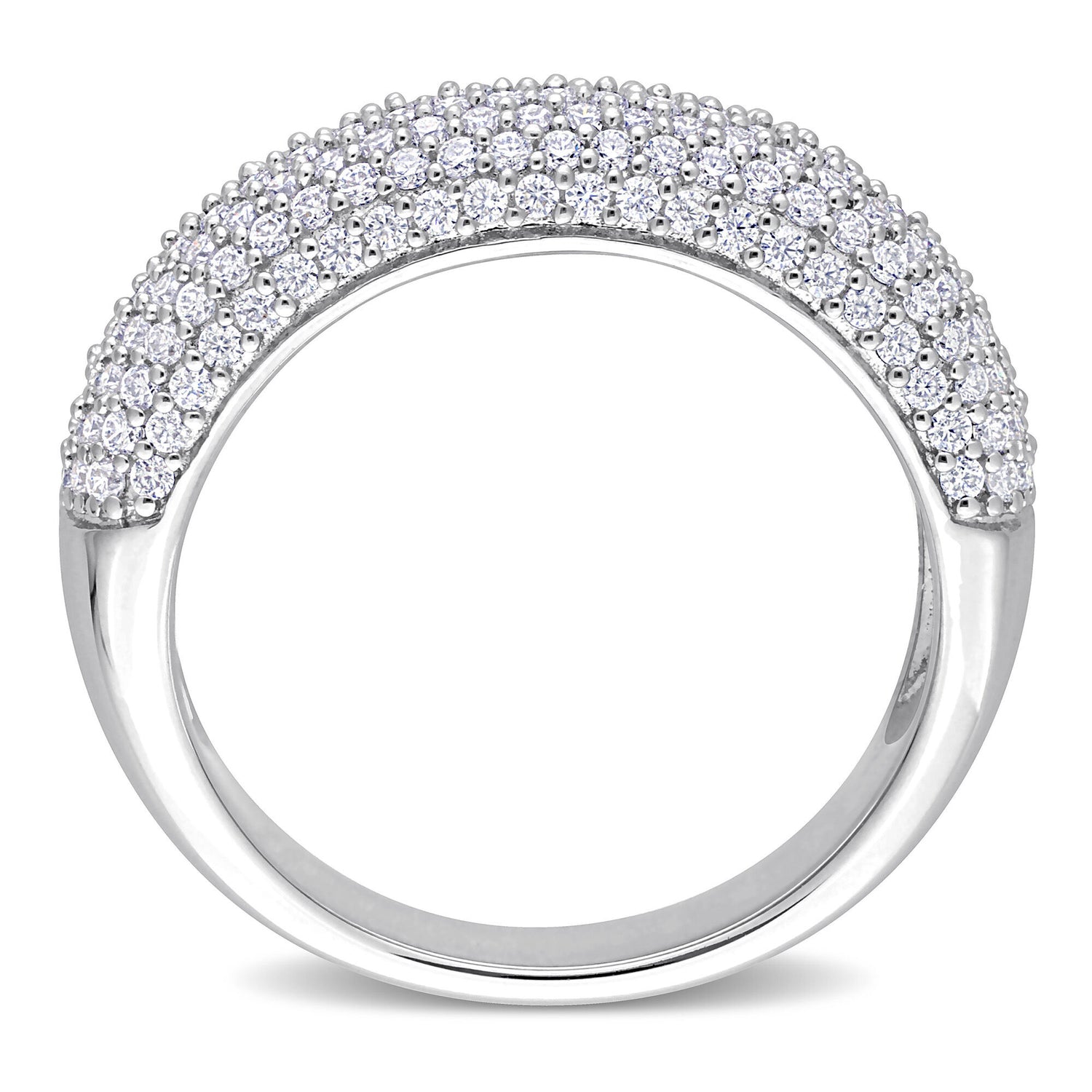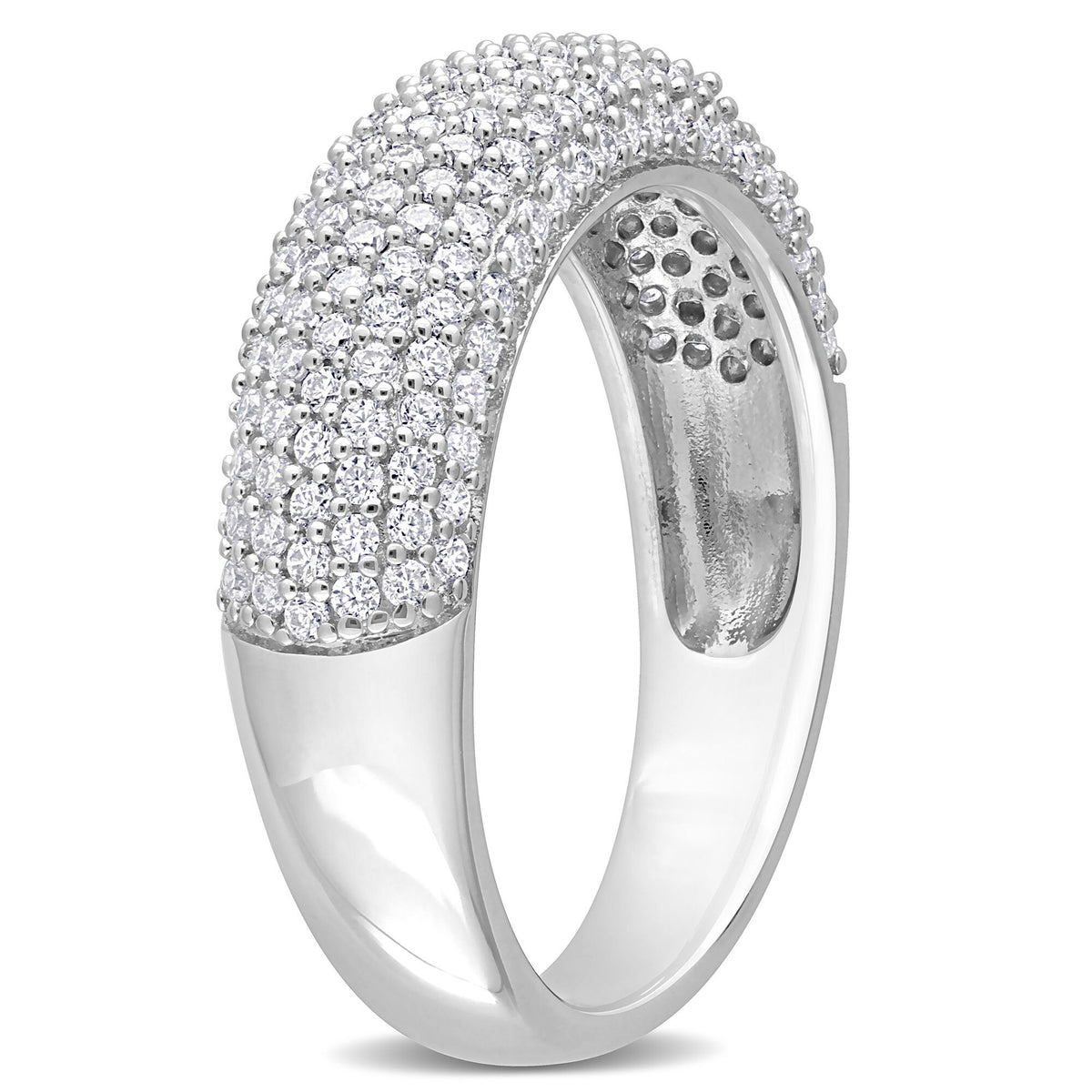 This Lab-Created Moissanite Ring by Helzberg dazzles with rows of 173 lab-created moissanite stones, creating an alluring shimmer in polished sterling silver. The intricate design embodies glamour and modern luxury, offering radiant sparkle from every angle and a durable finish for lasting beauty.