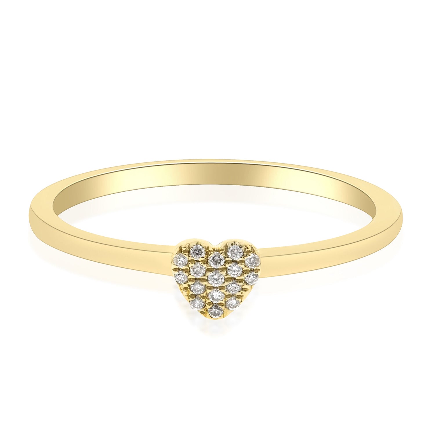 This Diamond Accent Heart Ring by Helzberg is a delicate and dazzling emblem of love. Featuring a heart formed by 16 luminous round brilliant cut diamonds, the design is set in timeless 10K yellow gold. Its elegant simplicity allows the diamonds to shine as the focal point, making it a perfect token of affection or an everyday symbol of love and beauty.