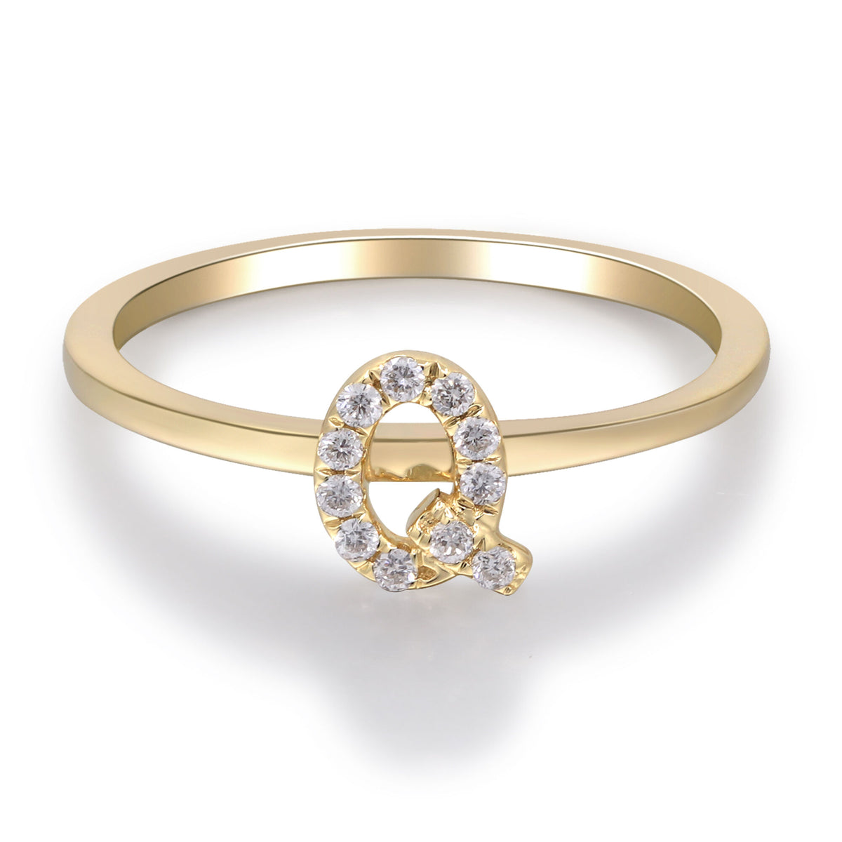 Diamond Accent "Q" Initial Ring in 10K Yellow Gold