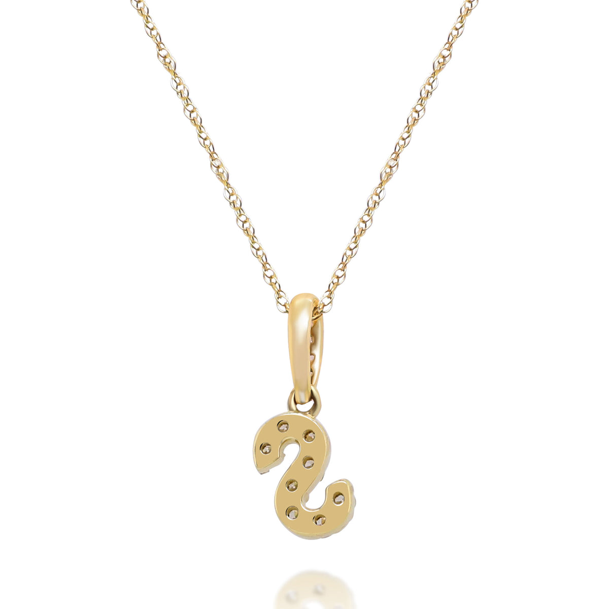 This Diamond S Initial Pendant by Helzberg is a sparkling celebration of the letter “S.” Featuring 12 glittering diamonds set in resilient 10K yellow gold, it represents personal identity with a luxurious shine. Perfect as a gift or a meaningful addition to your own collection. Ideal for layering or solo wear.