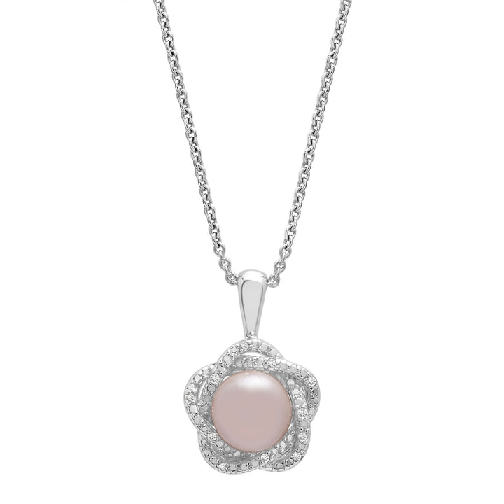 Pink Freshwater Cultured Pearl & Diamond Accent Pendant in Sterling Silver