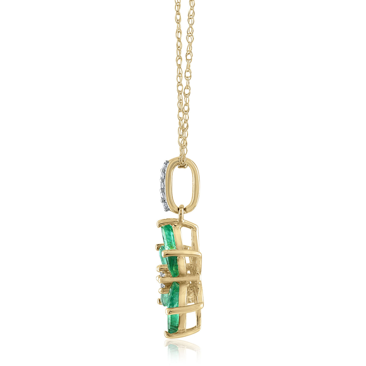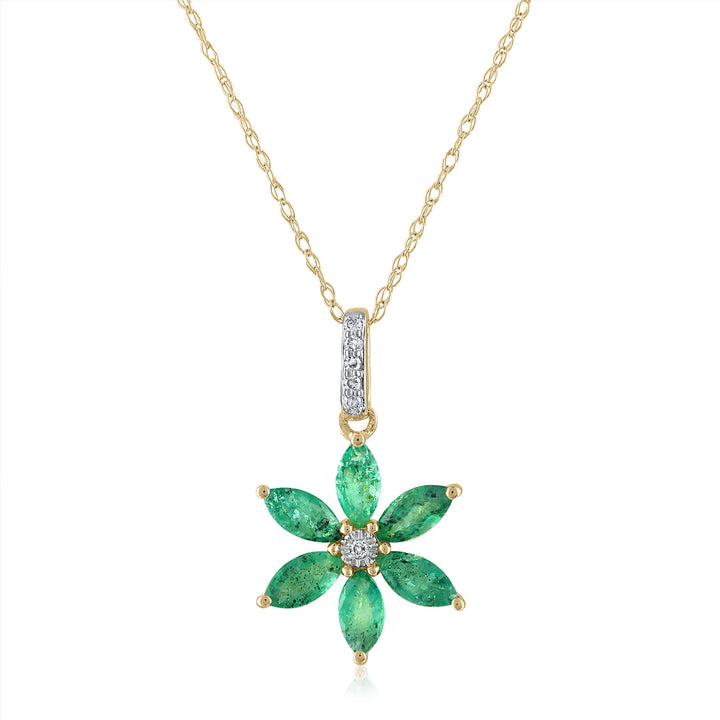 Emerald Flower Pendant with Diamond Accent in 14K Yellow Gold