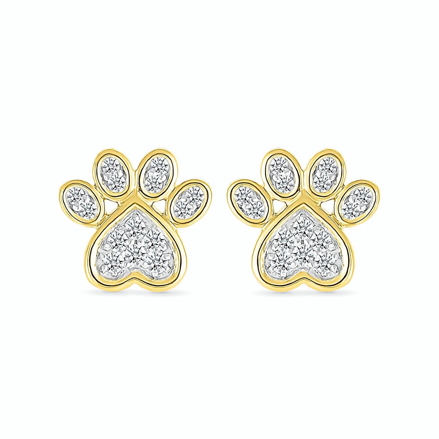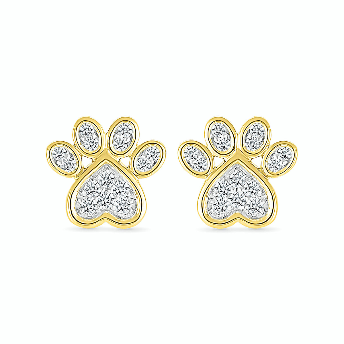 Diamond Paw Print Stud Earrings in 10K Yellow Gold (1/5 ct. tw.)