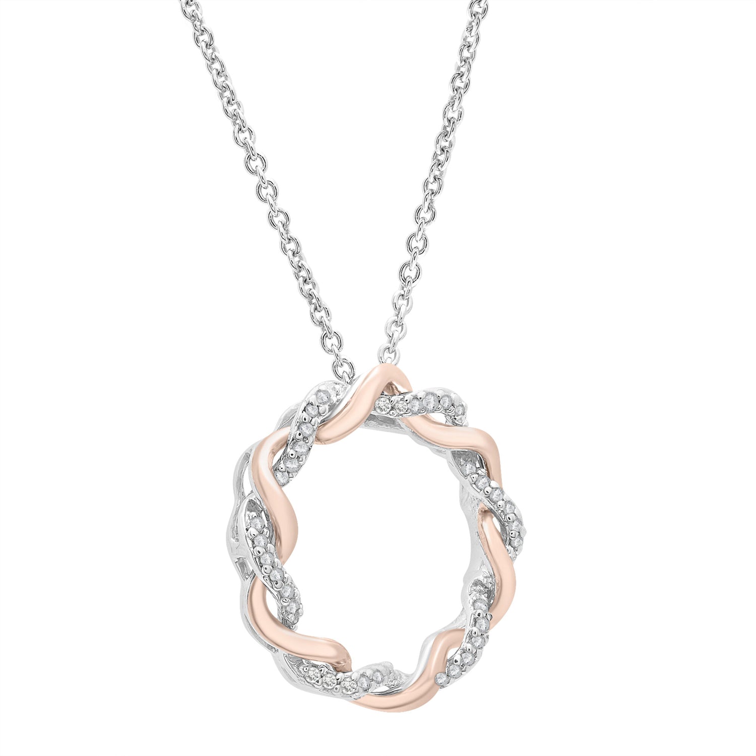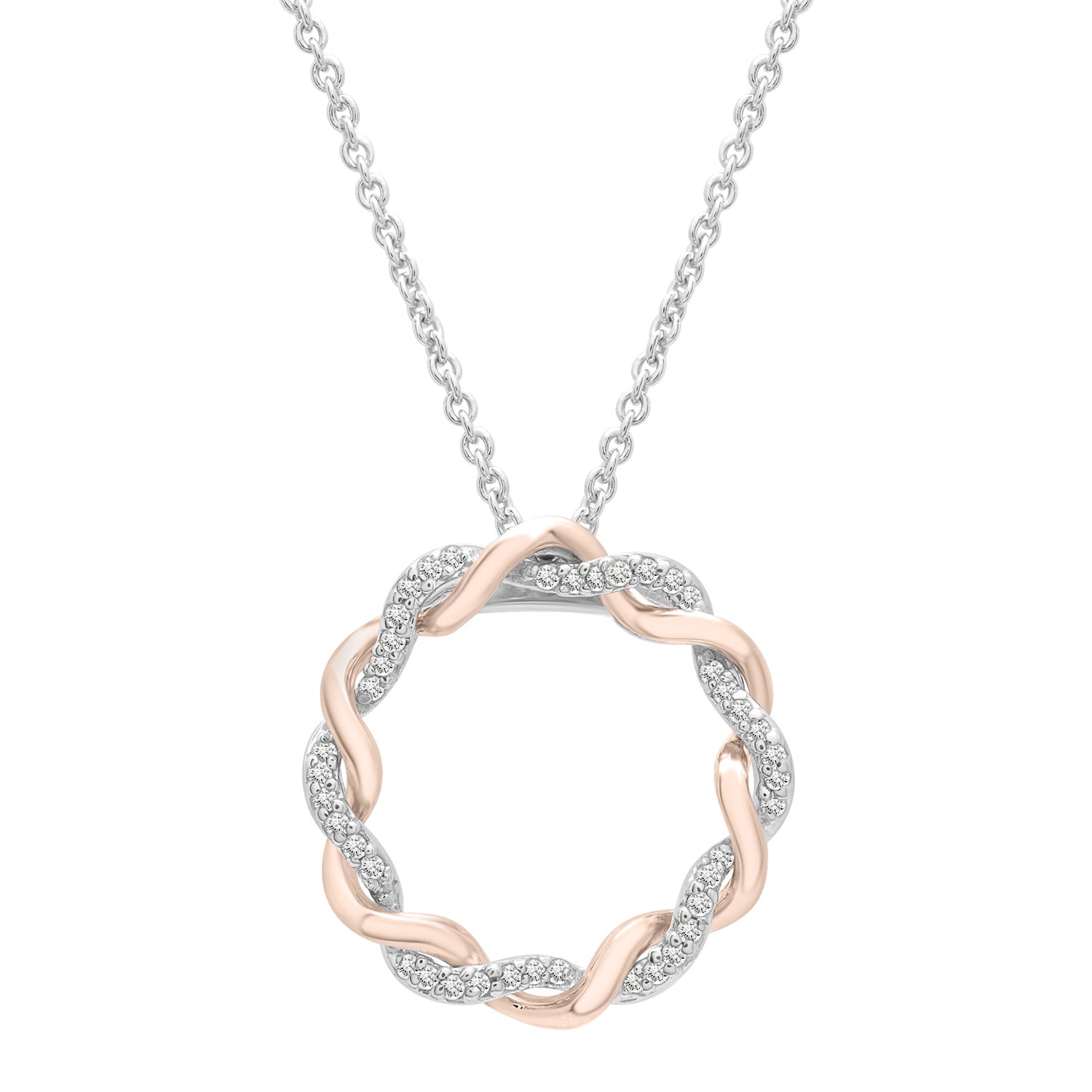 Diamond Accent Circle Pendant in 14K Rose Gold & Sterling Silver
