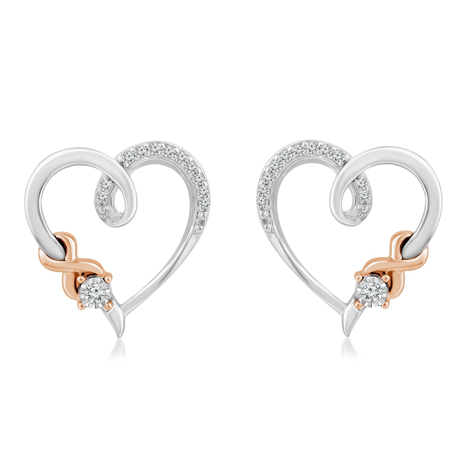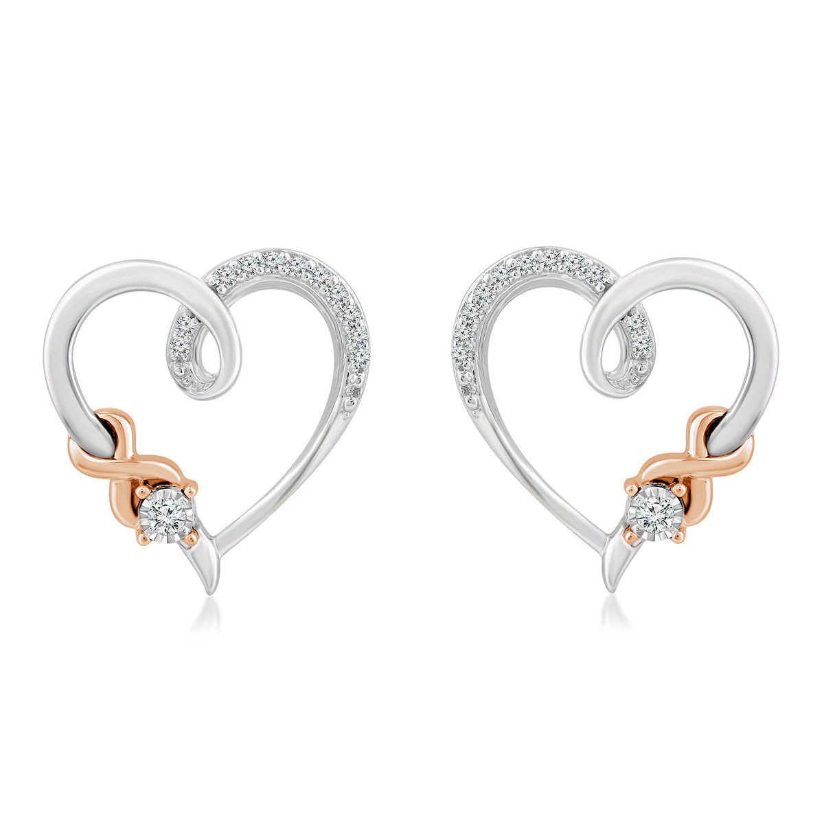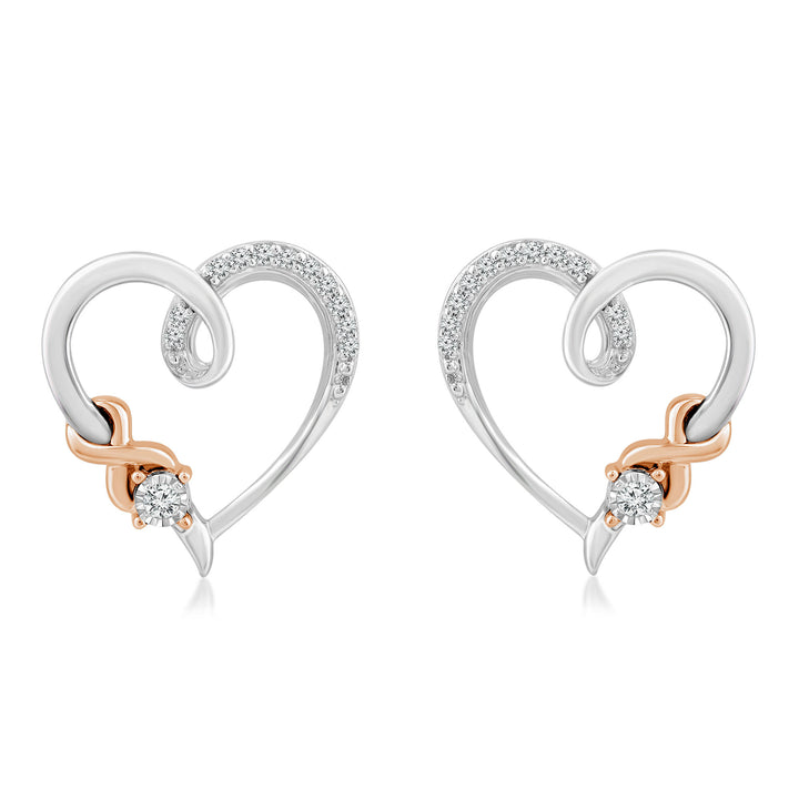 Diamond Accent Heart Stud Earrings in Sterling Silver & 10K Rose Gold