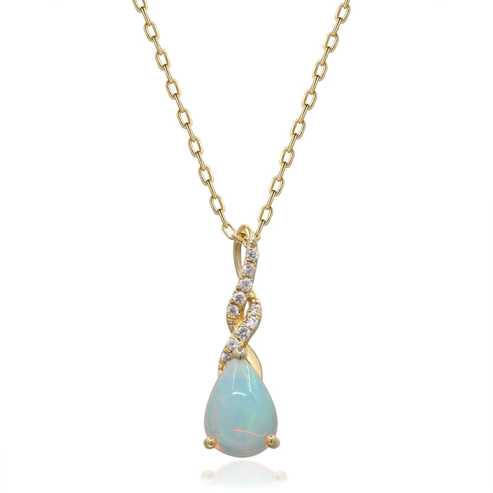 Pear-Shaped Opal and Diamond Accent Pendant in 10K Yellow Gold