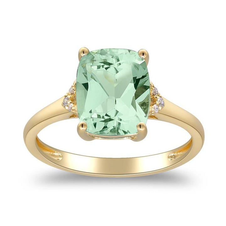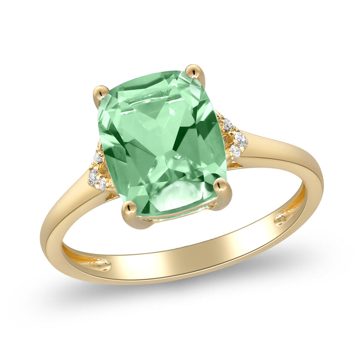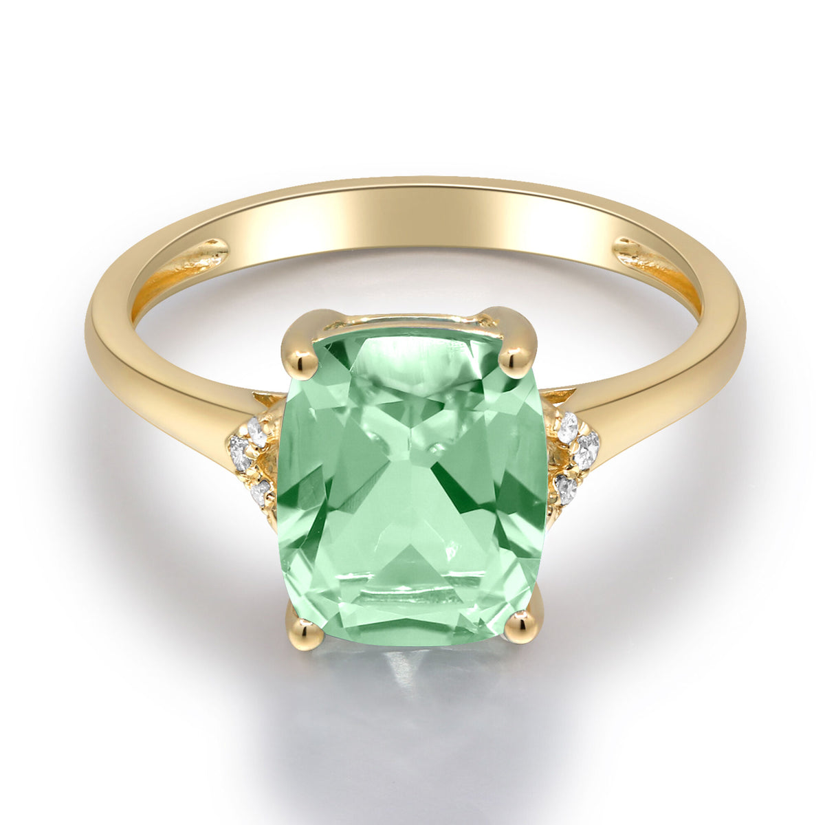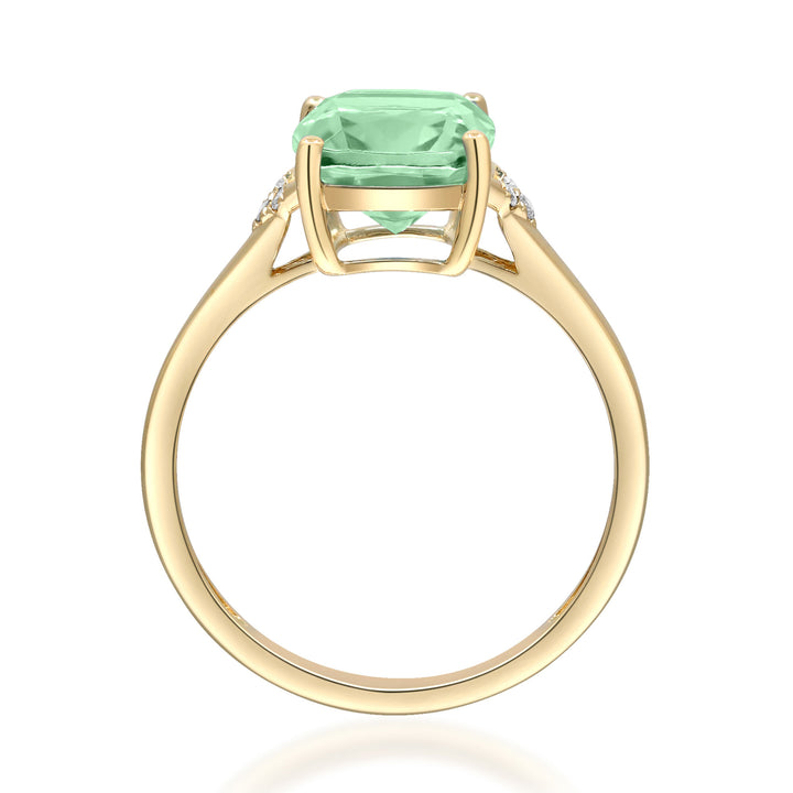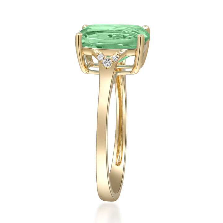Green Amethyst and Diamond Accent Ring in 10K Yellow Gold