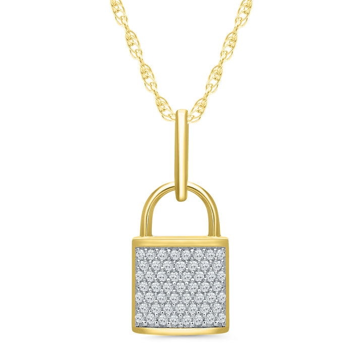 Pave Diamond Padlock Pendant in 10K Yellow Gold (1/7 ct. tw.)