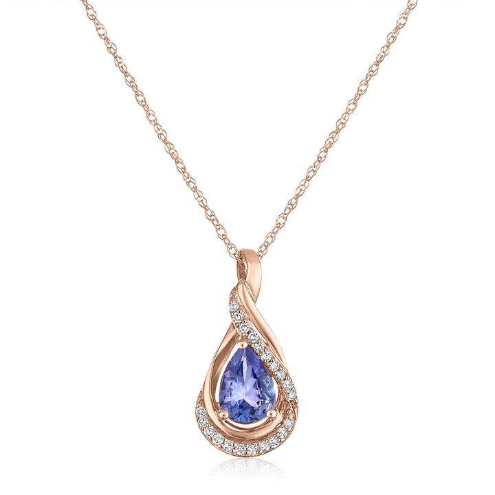 Pear-Shaped Tanzanite and Diamond Pendant in 14K Rose Gold (1/10 ct. tw.)