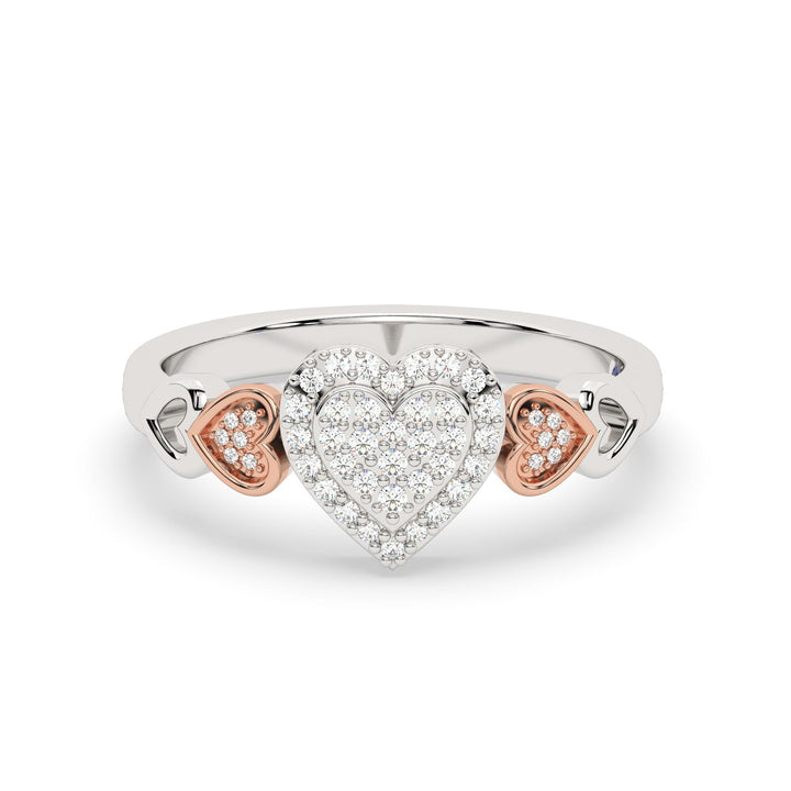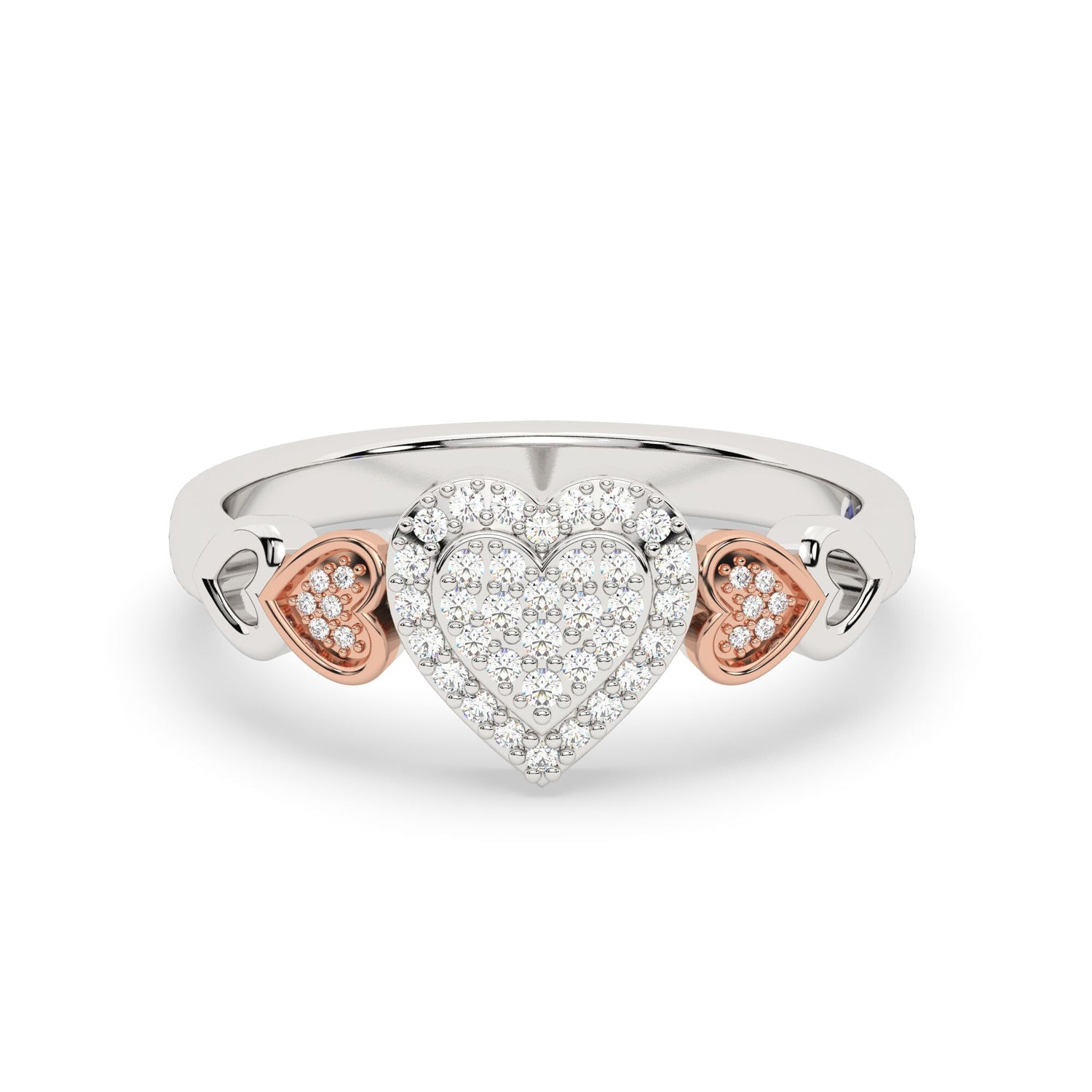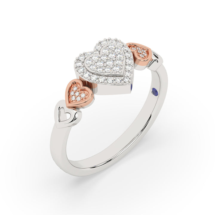 This Diamond Heart Ring with Blue Sapphire Accent by Helzberg pairs sterling silver and 10K rose gold in a romantic design. It features 47 round single cut diamonds arranged in heart motifs, adding sweet sparkle and strength to everyday elegance.