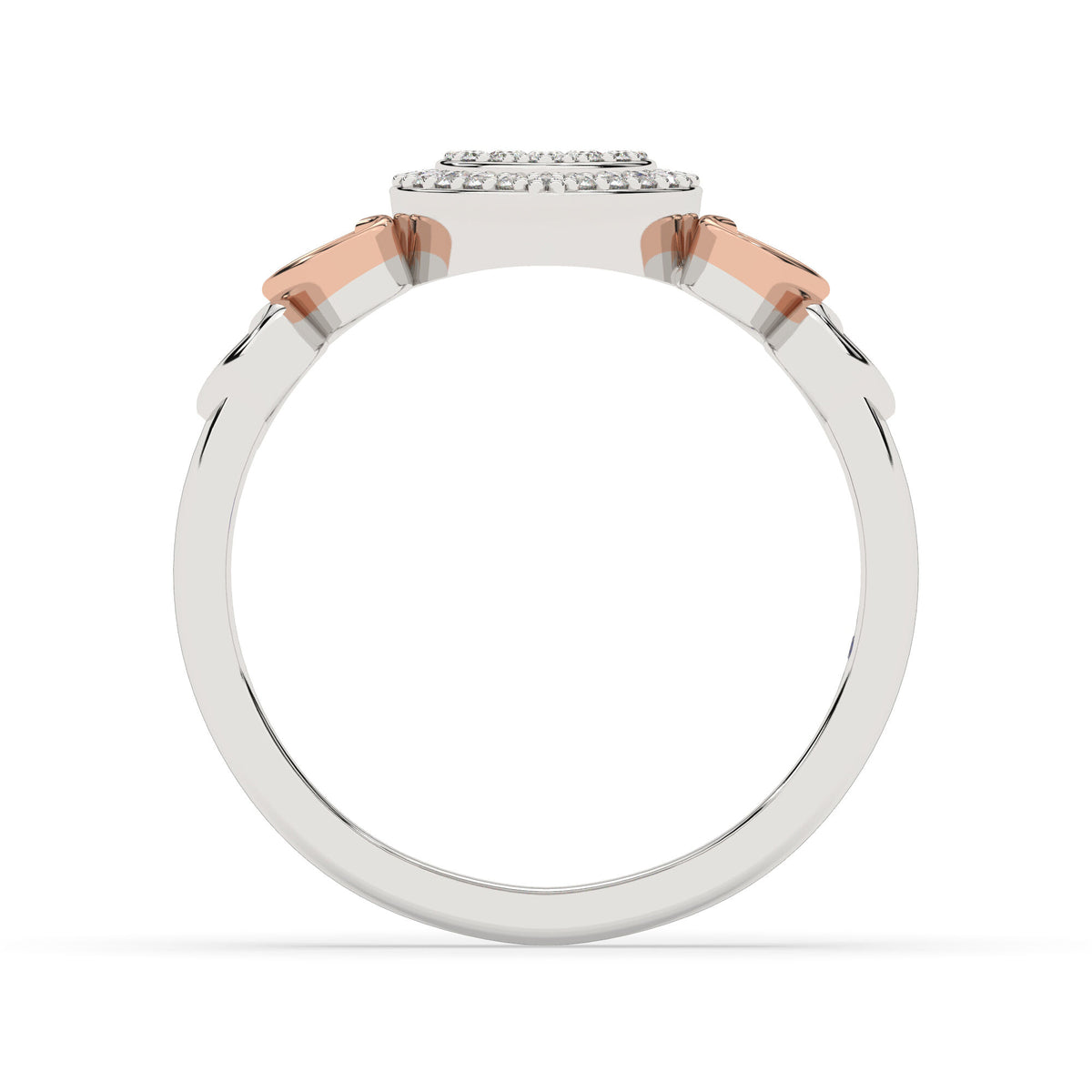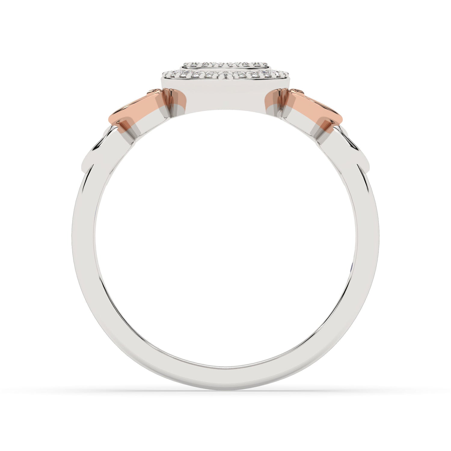 Sterling silver and 10K rose gold ring adorned with 47 round single cut diamonds totaling approx. 1/7 ct. tw. Blue sapphire accent included; ring size and width not specified.