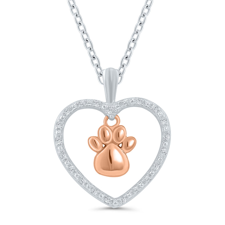 Diamond Accent Paw Print Heart Pendant in Sterling Silver and 10K Rose Gold