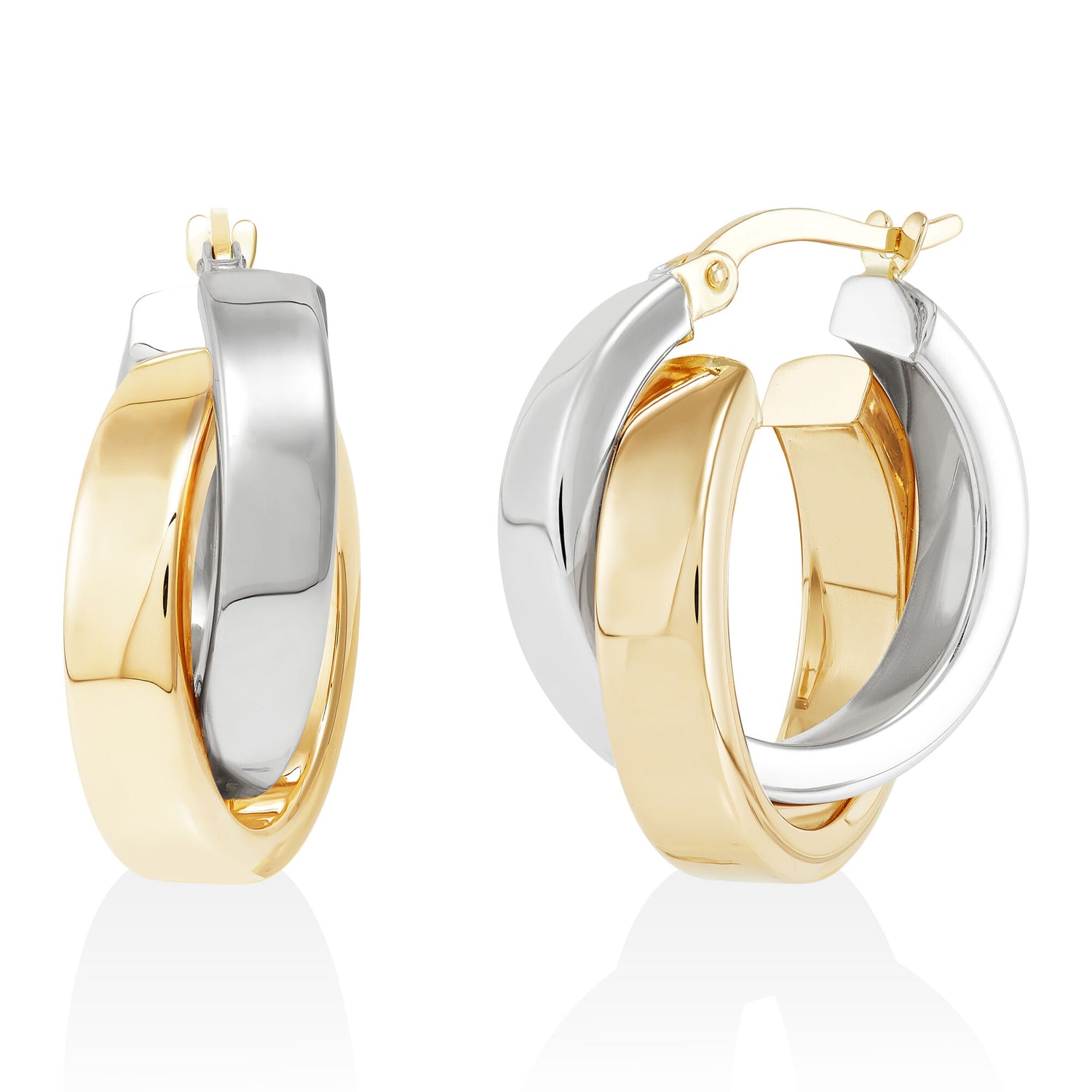 Crossover Hoop Earrings in 14K Yellow and White Gold