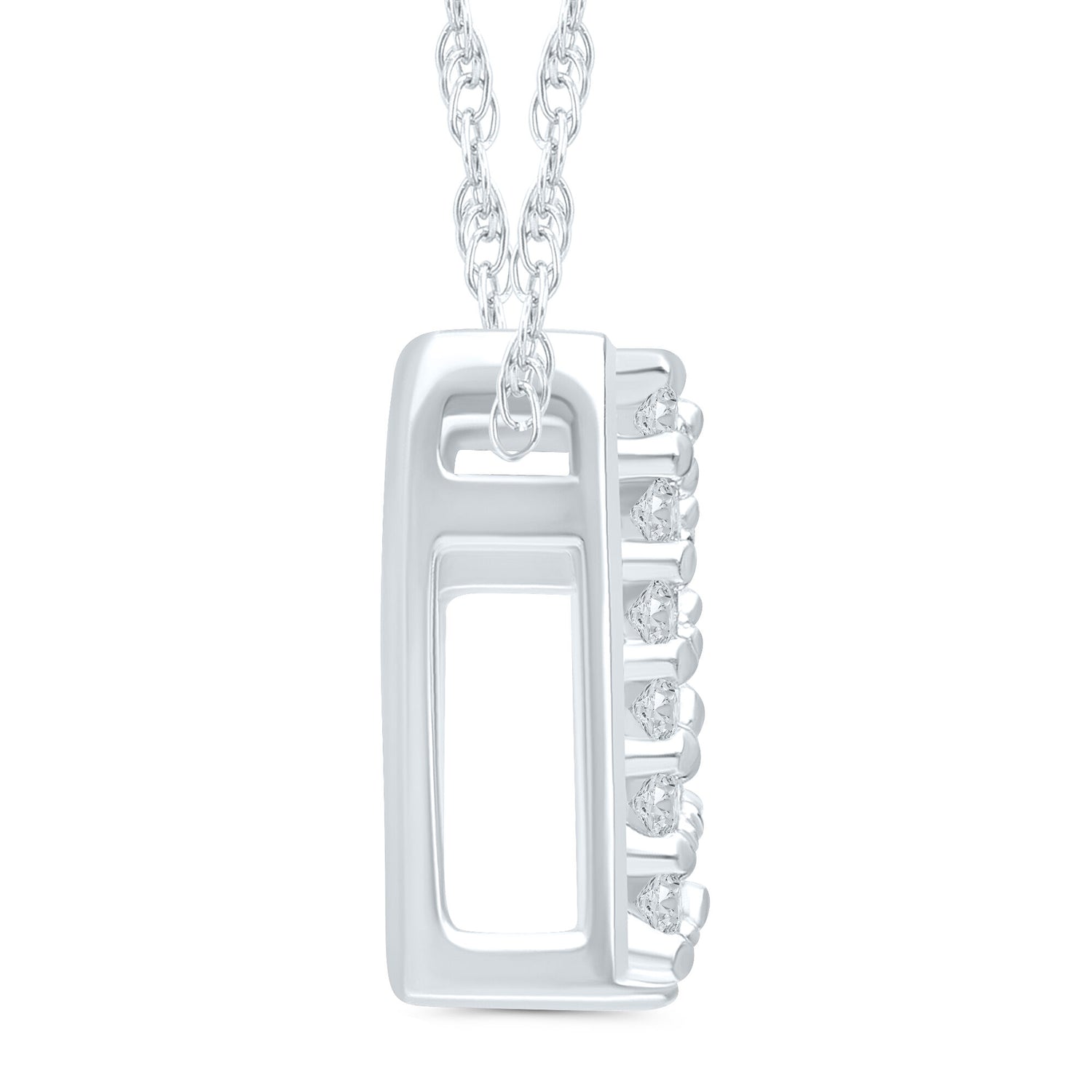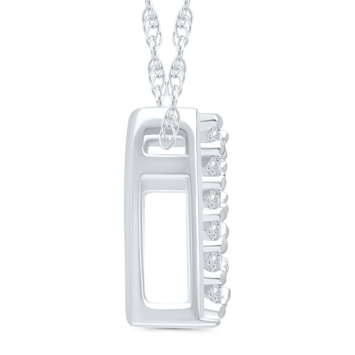 Made in 10K white gold with 17 round single cut diamonds. Pendant dimensions and bail type not specified. Polished finish.