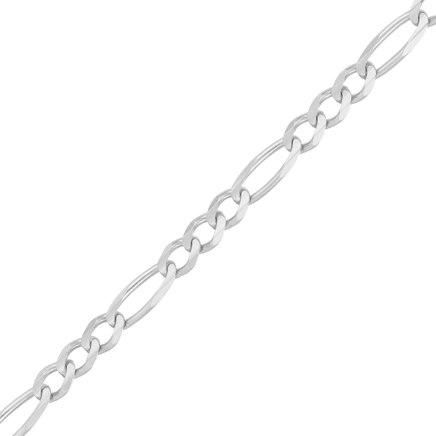 Crafted in solid 14K white gold featuring a Figaro chain design measuring 4mm wide and approximately 24 inches in length. Polished finish with clasp type not specified.