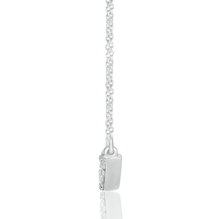Crafted in sterling silver with nine round brilliant cut diamonds totaling approximately 1/8 carat total weight. Necklace length and clasp type not specified. Diamond-cut cable chain.
