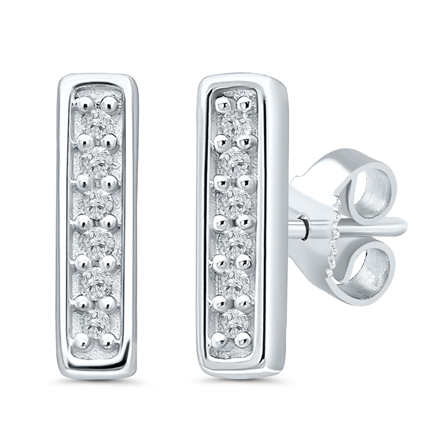 These Diamond Accent Bar Earrings by Helzberg offer sleek sophistication with 12 round single cut diamonds set in sterling silver. The clean, linear design is perfect for those seeking understated luxury with a modern edge. Ideal for both day and evening wear, these earrings complement any look with effortless sparkle.