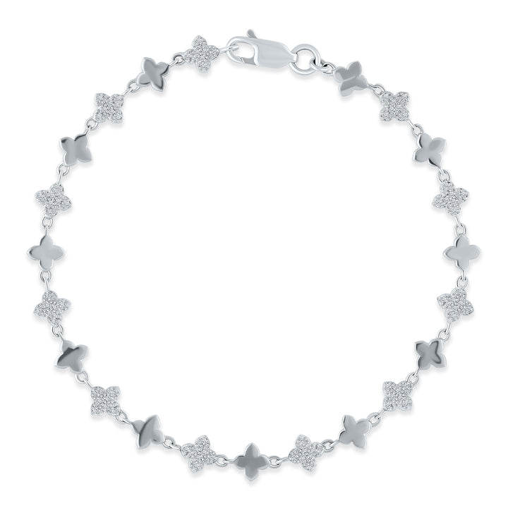 Diamond Clover Line Bracelet in Sterling Silver (1/5 ct. tw.)