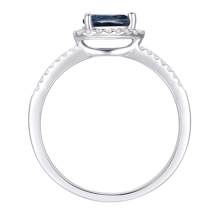 This Blue Sapphire East/West Pear-Shaped Ring by Helzberg captivates with its unique orientation and stunning design. Featuring a 6x4 mm pear-shaped brilliant blue sapphire set east-west in 10K white gold, it is accented by 31 sparkling round single cut diamonds. This ring balances boldness and elegance, making it a breathtaking addition to any jewelry collection.