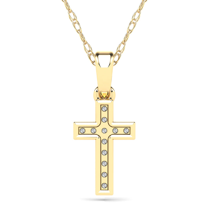 Diamond Accent Cross Pendant in 14K Yellow Gold