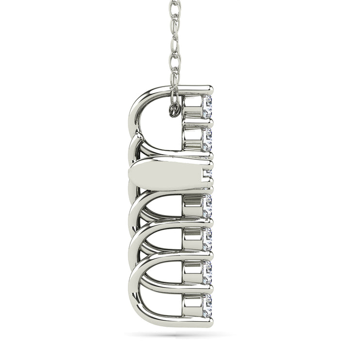 Crafted in 14K white gold. Set with 11 round brilliant cut diamonds totaling approximately 0.1 carats. Polished finish on an 18-inch chain with spring ring clasp.