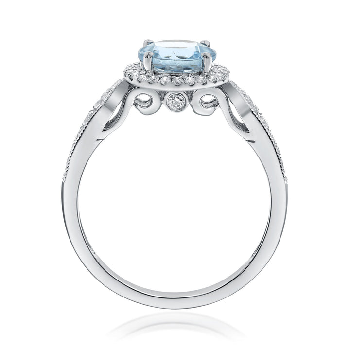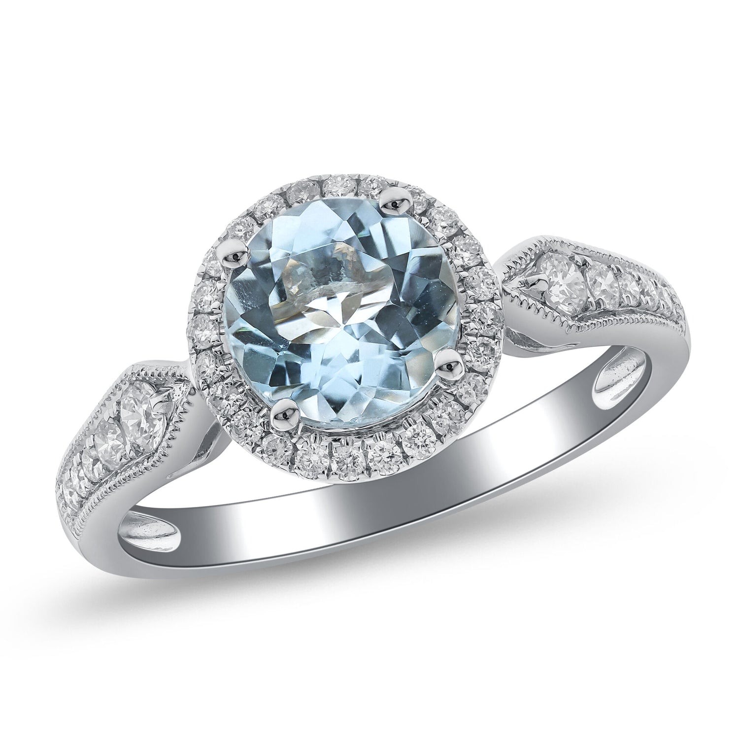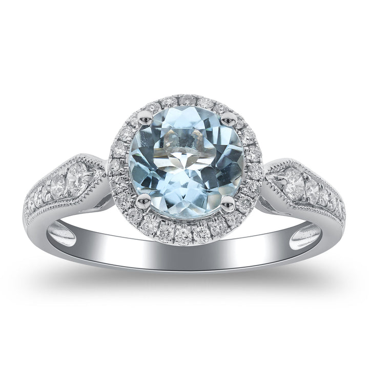 Aquamarine and Diamond Ring in 10K White Gold (1/3 ct. tw.)