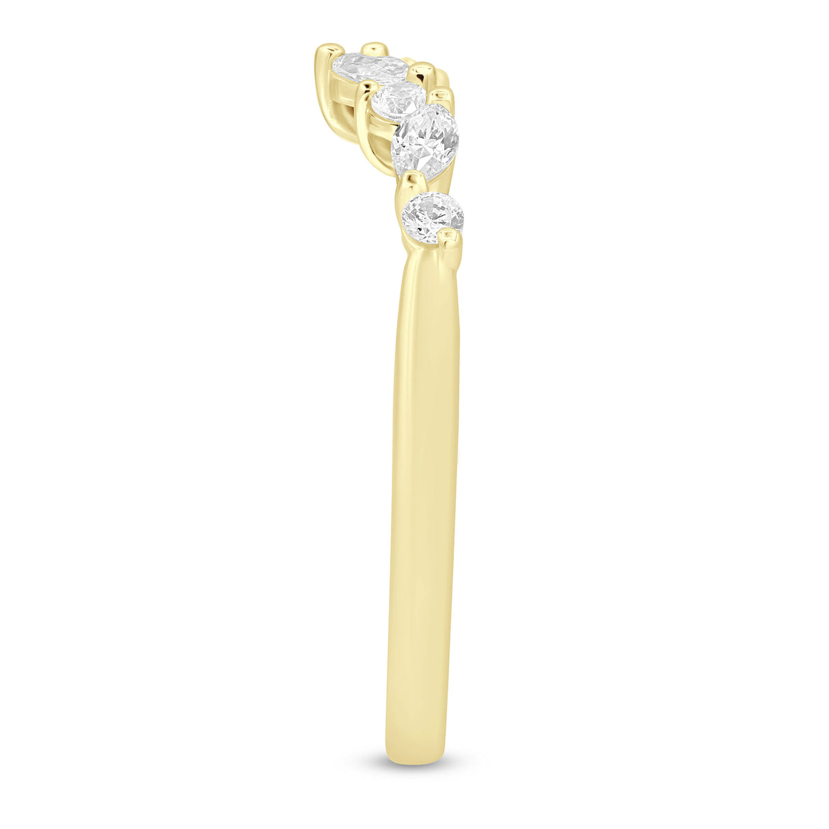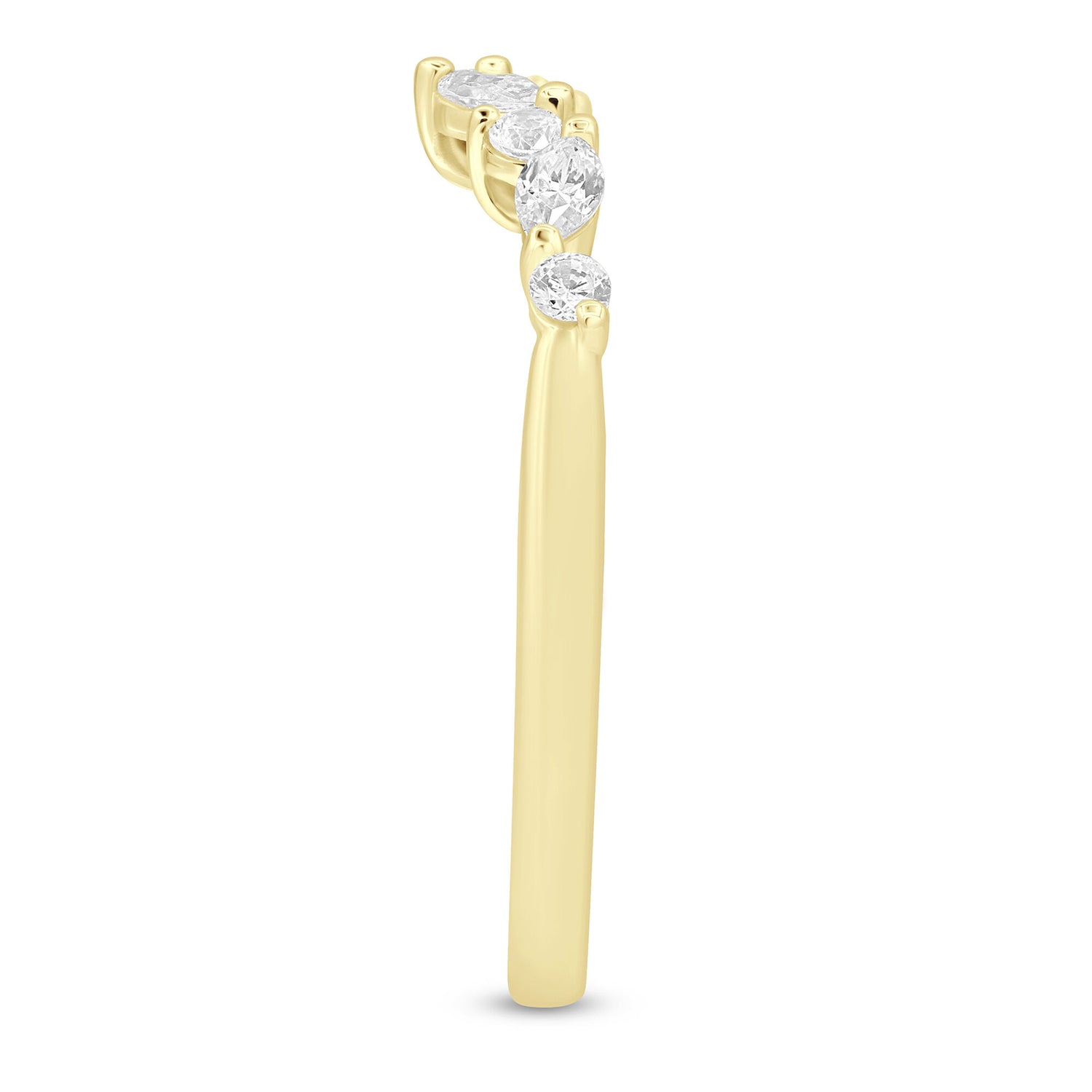 Crafted in 14K yellow gold, set with four marquise brilliant cut diamonds and six round brilliant cut diamonds totaling 1/3 carat total weight. Chevron band design with standard sizing.