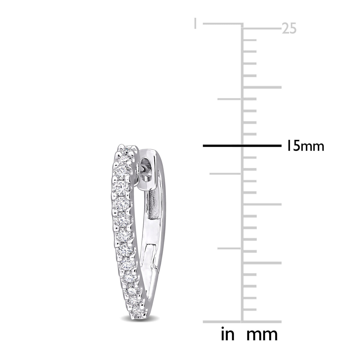 These Lab-Created Moissanite Pointed Hoop Earrings by Helzberg sparkle with stellar brilliance. Each sterling silver hoop is adorned with 13 lab-created Moissanite gems, exuding the luminous sparkle of stars. The hinged closure ensures comfort and security, making these earrings a luxurious choice for everyday elegance or special occasions.