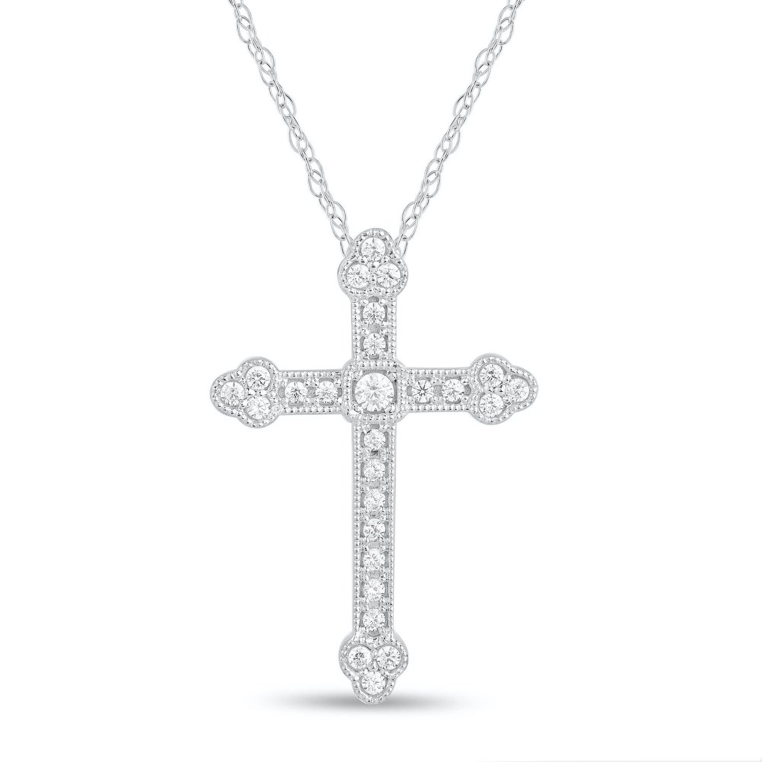 Diamond Milgrain Cross Pendant in 14K White Gold (1/4 ct. tw.)