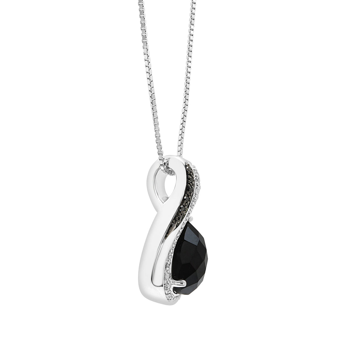 Pear-Shaped Onyx Pendant with Black and White Diamonds in Sterling Silver (1/7 ct. tw.)