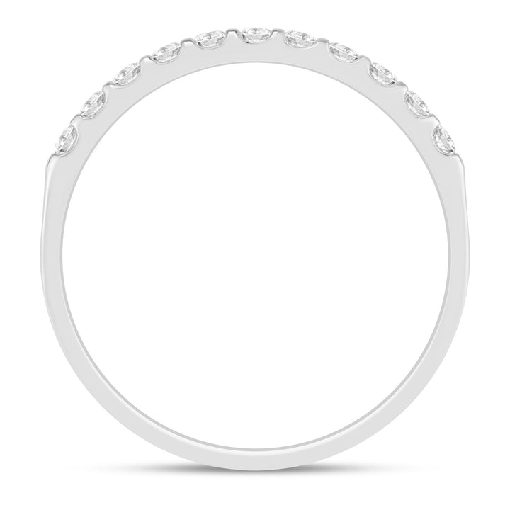 This Diamond Band by Helzberg is a classic 10K white gold ring set with 11 round brilliant cut diamonds. Its timeless style delivers elegant sparkle for daily wear or special occasions.