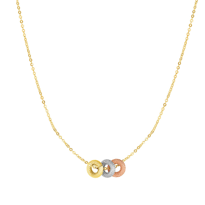 Tri-Color Circle Necklace in 14K Yellow, White and Rose Gold