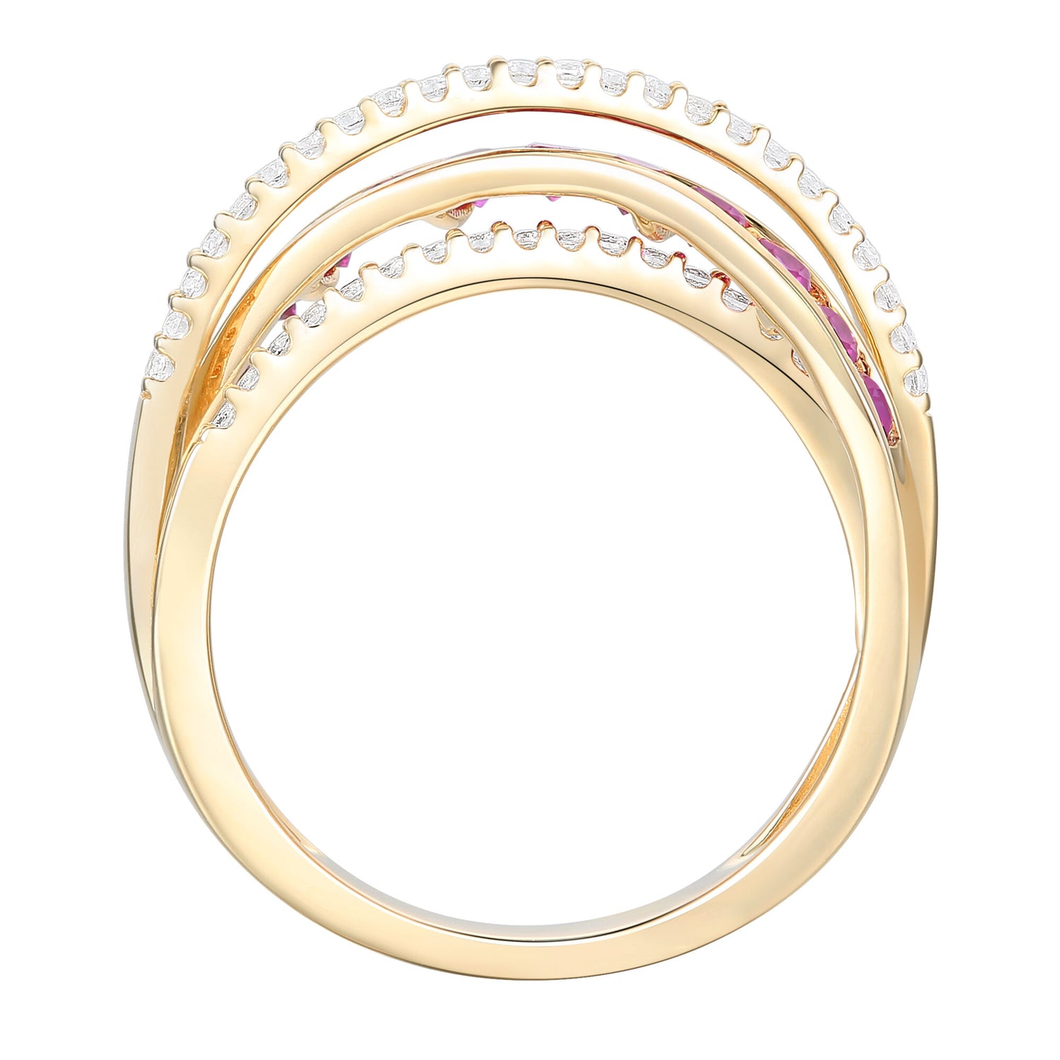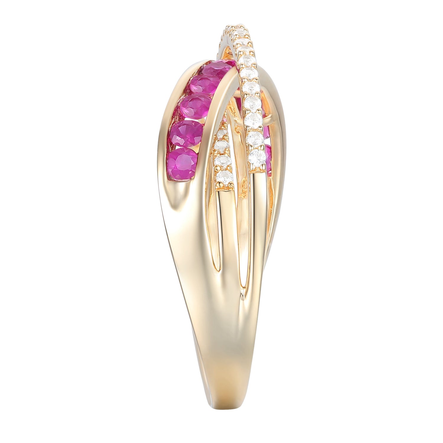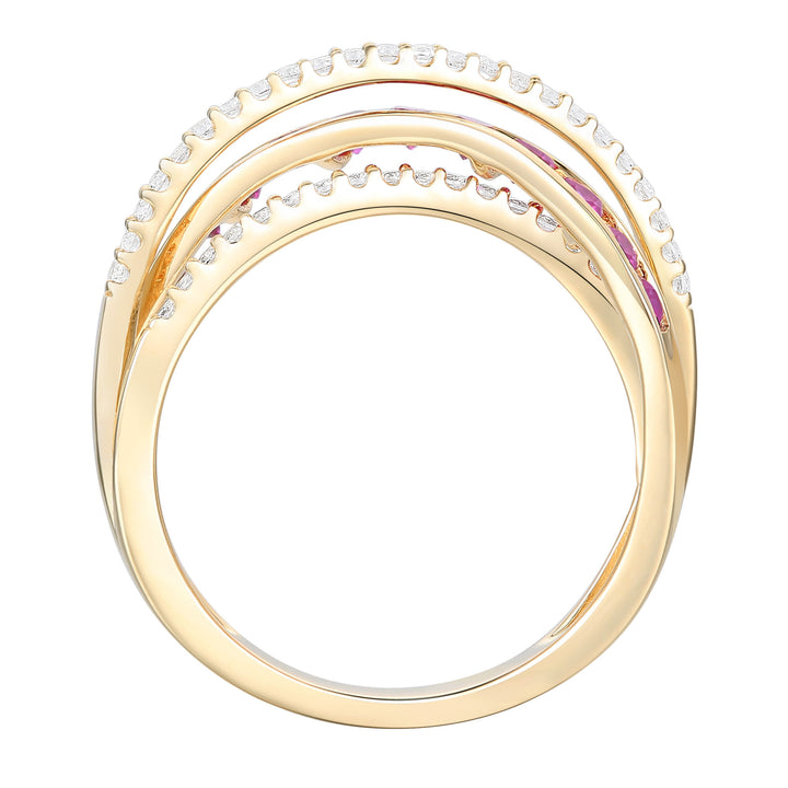 Ruby and Diamond Bypass Band in 10K Yellow Gold (1/4 ct. tw.)