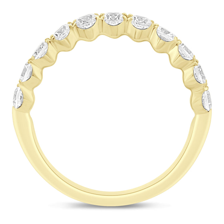 Handcrafted in 14K yellow gold, set with 11 round brilliant cut diamonds totaling approximately 1 carat total weight. Slim profile for comfortable daily wear.