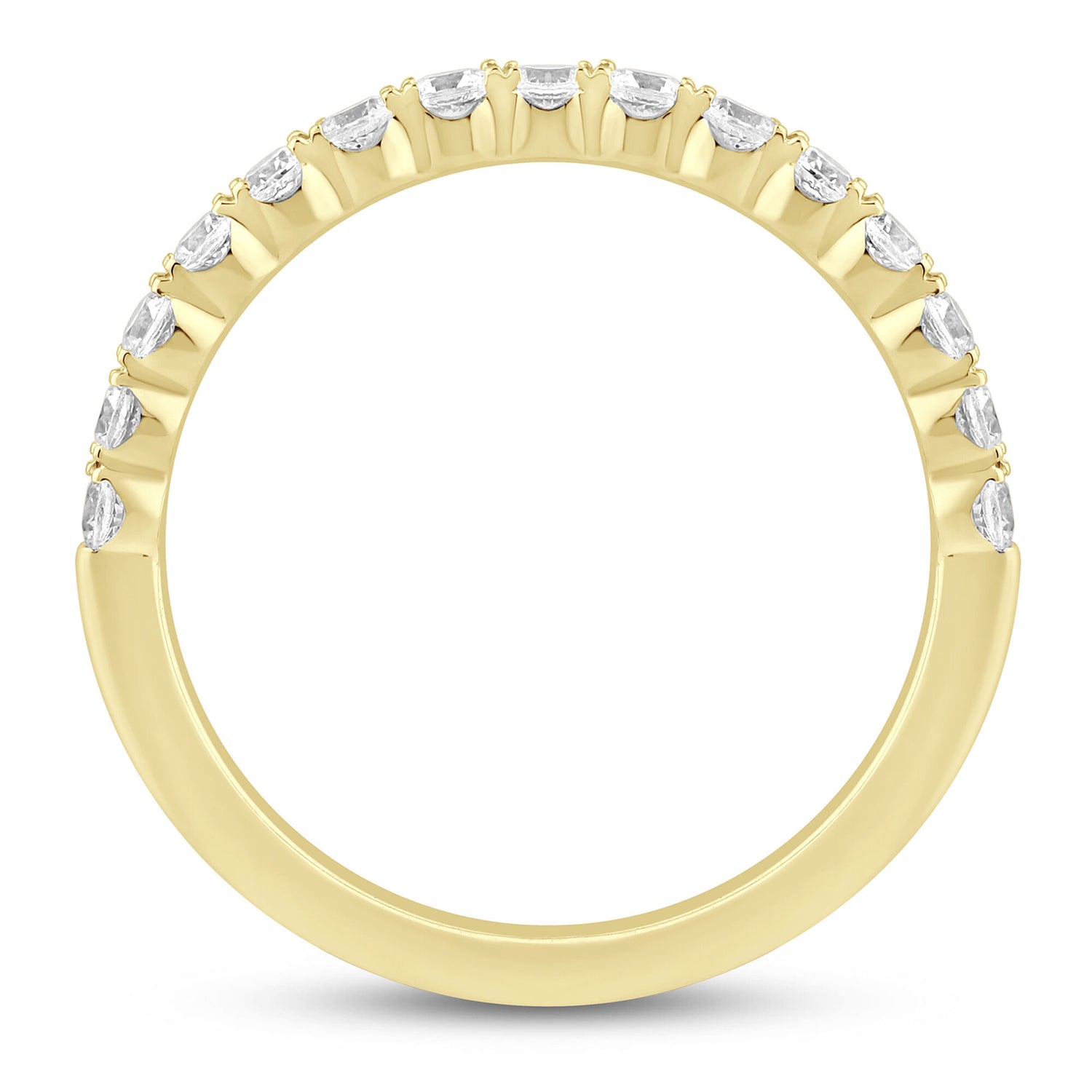 Handcrafted in 14K yellow gold, featuring 15 round brilliant cut diamonds totaling approximately 1/2 carat total weight. Slim profile for comfortable daily wear.