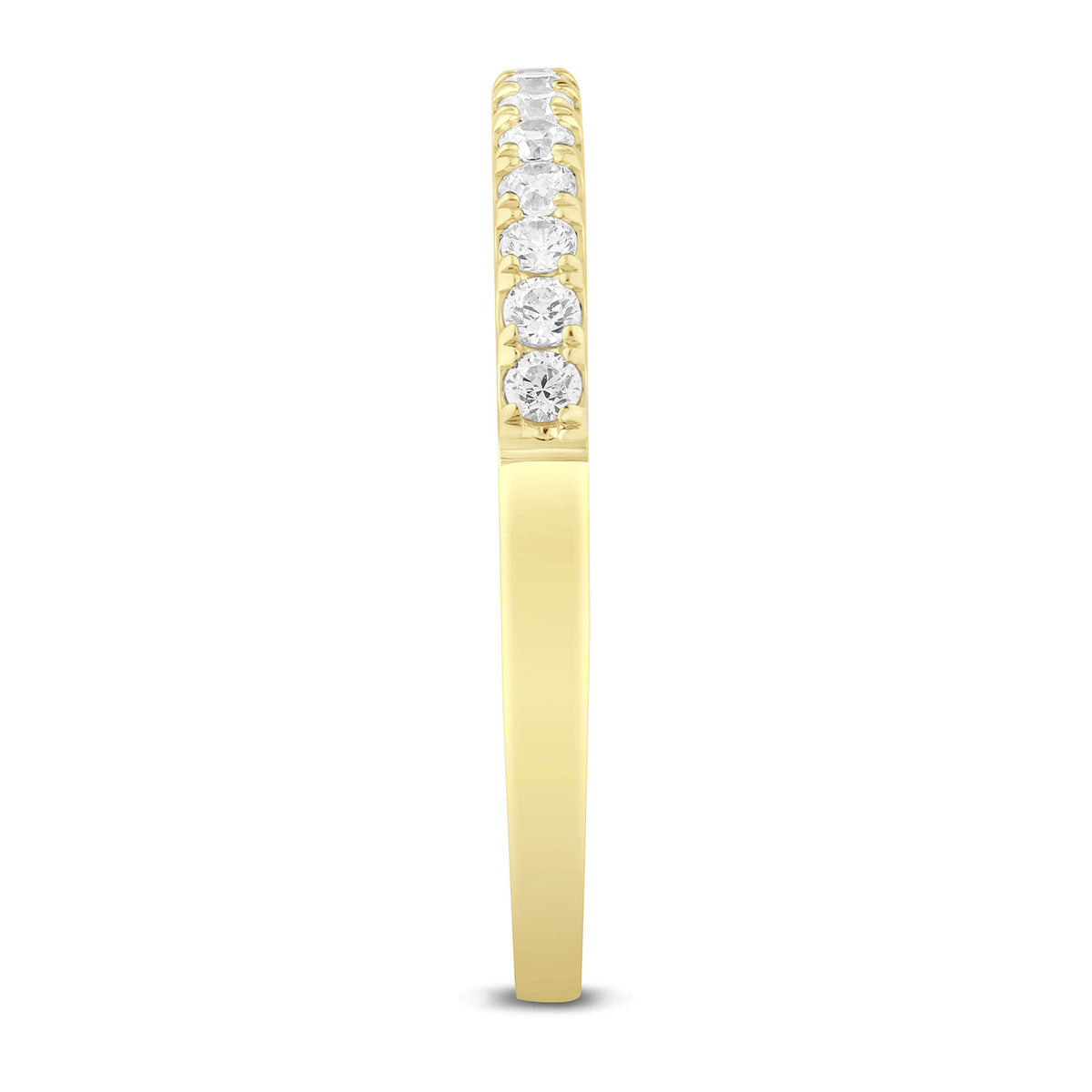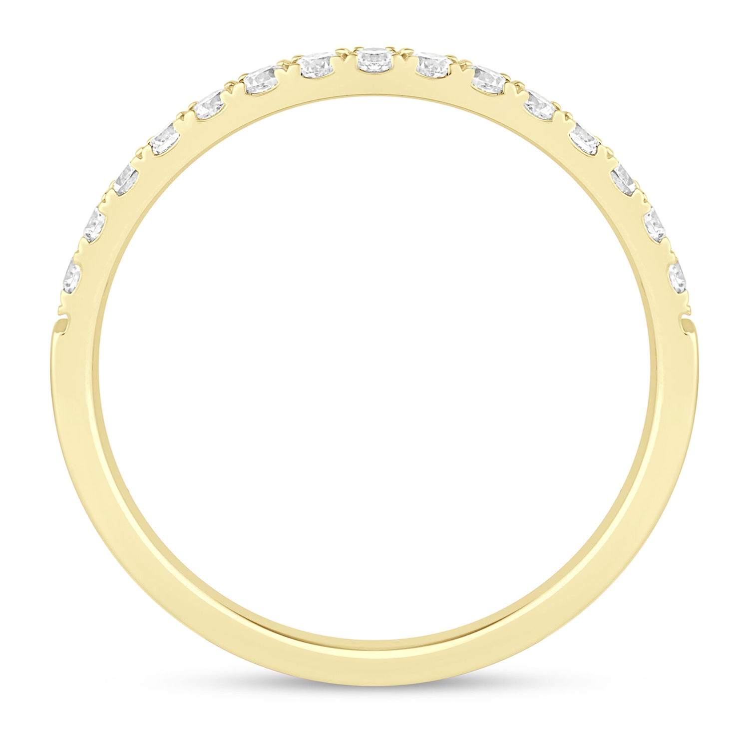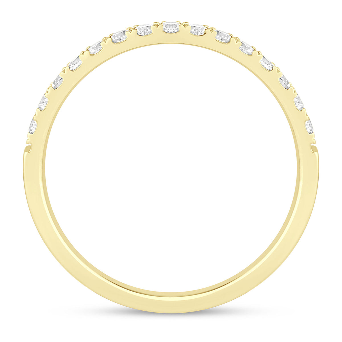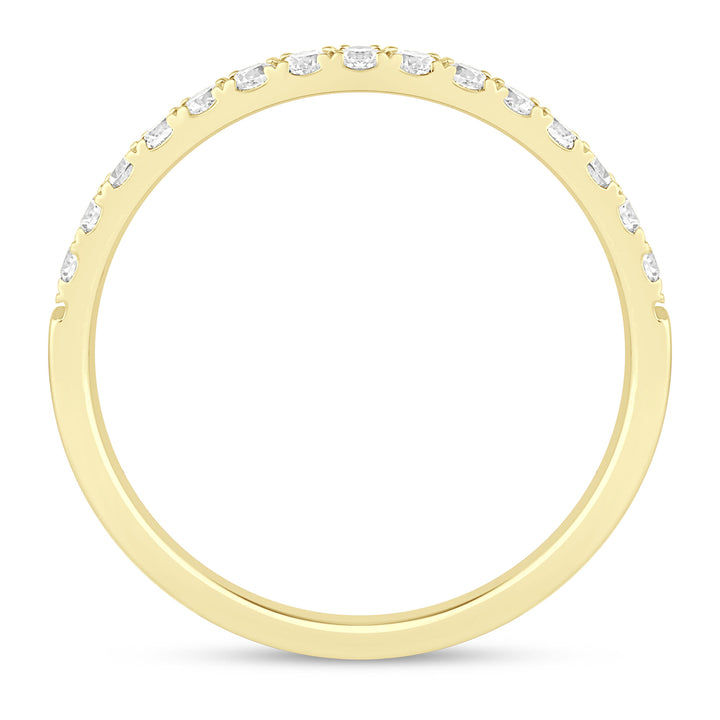 Handcrafted in 14K yellow gold, featuring 17 round brilliant cut diamonds totaling approximately 1/4 carat total weight. Precise craftsmanship ensures a slender band perfect for comfortable wear.