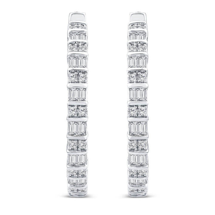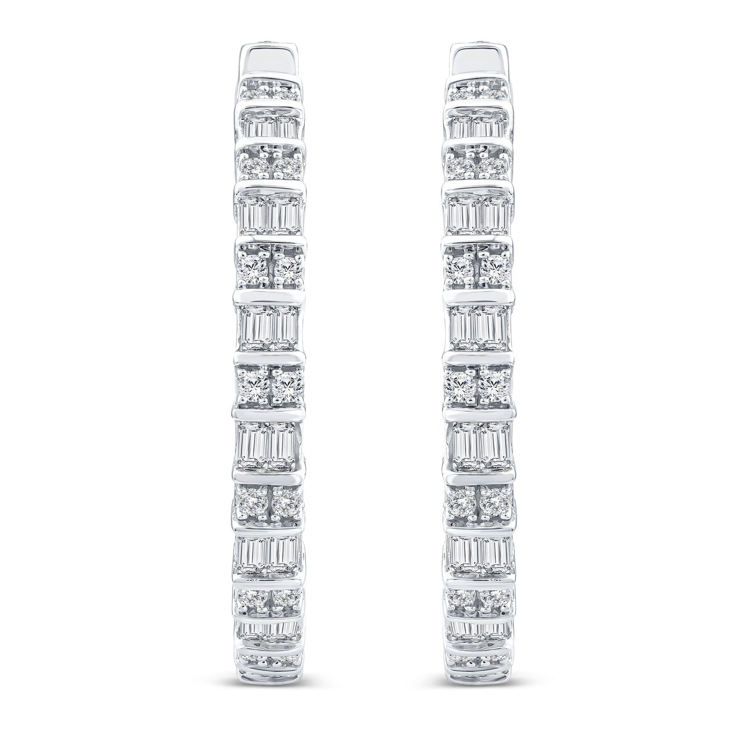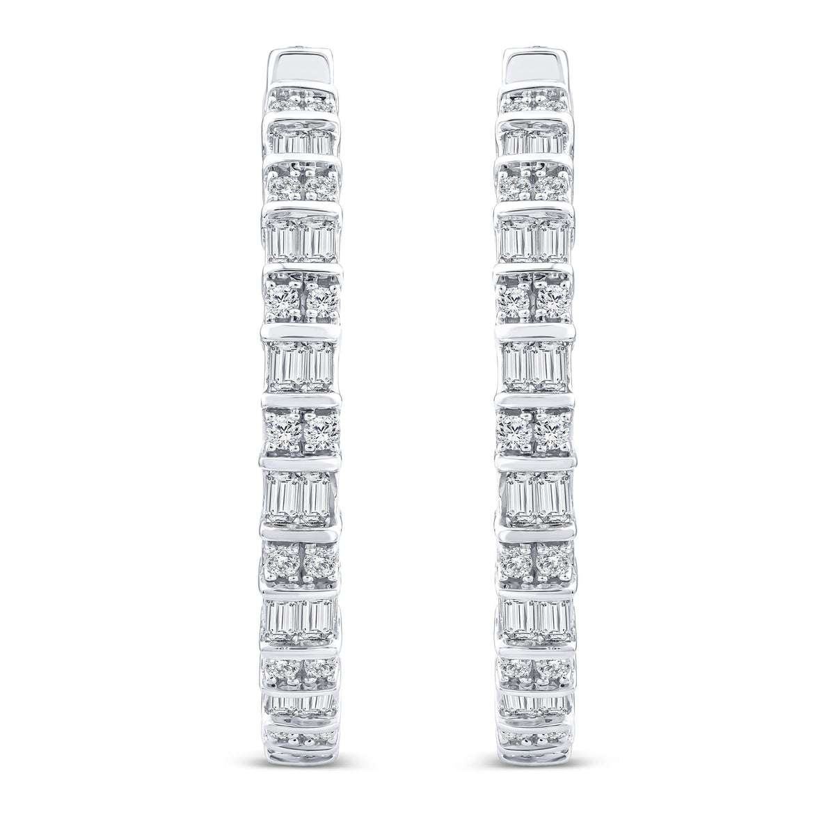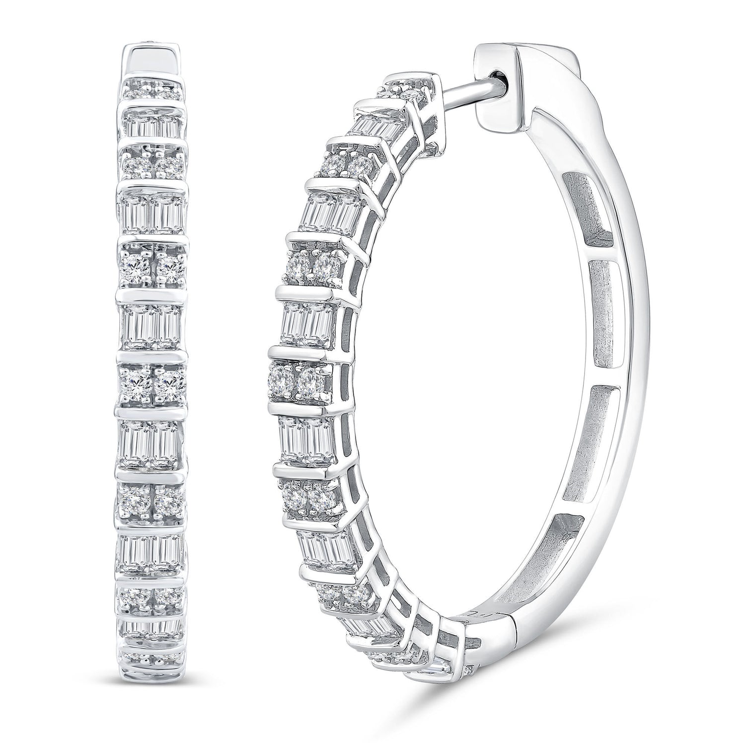 Round and Baguette Diamond Hoop Earrings in 14K White Gold (1 ct. tw.)