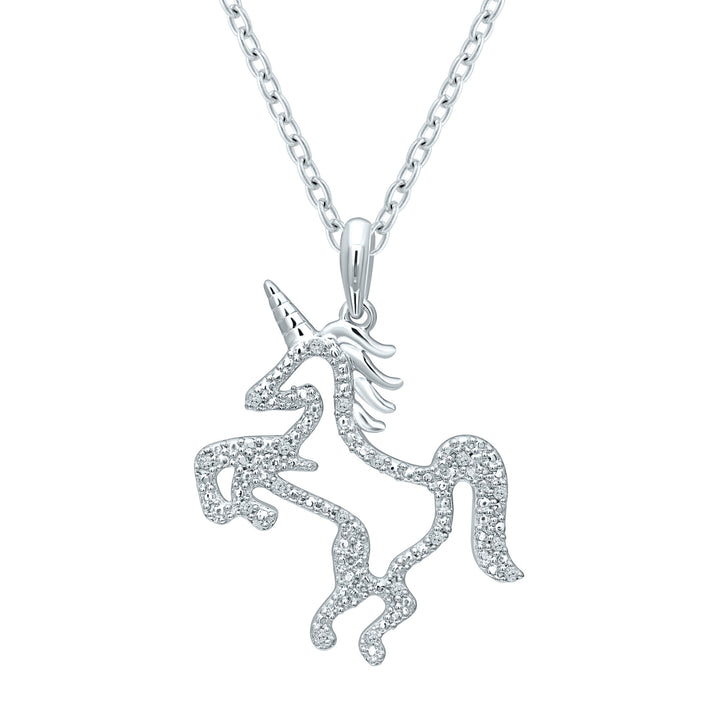Diamond Accent Unicorn Pendant in Sterling Silver