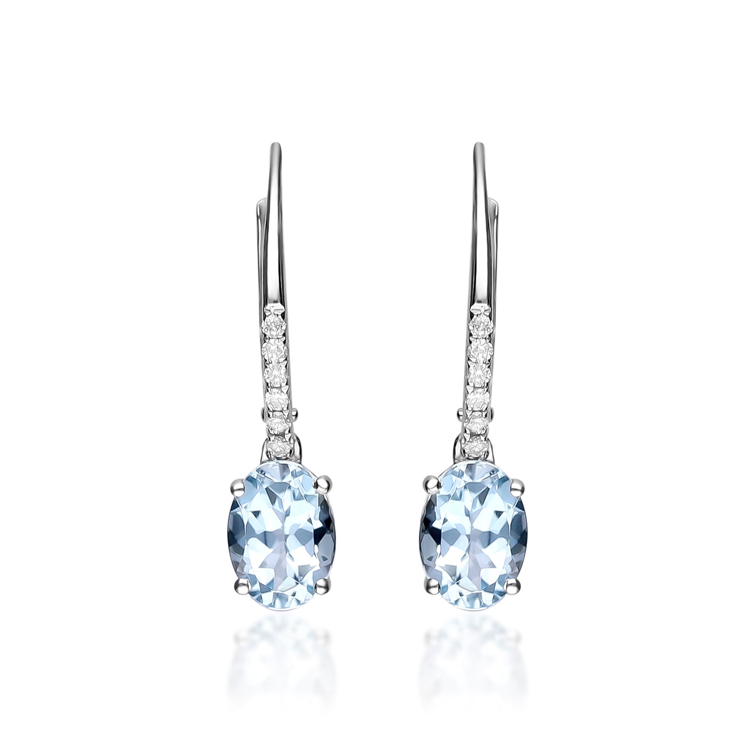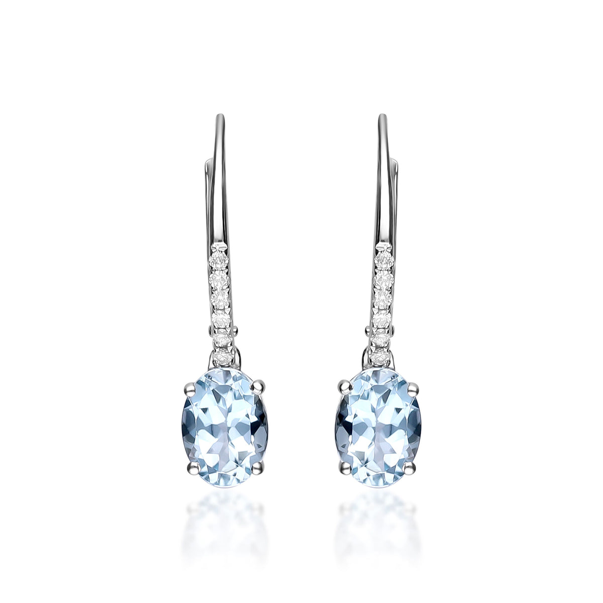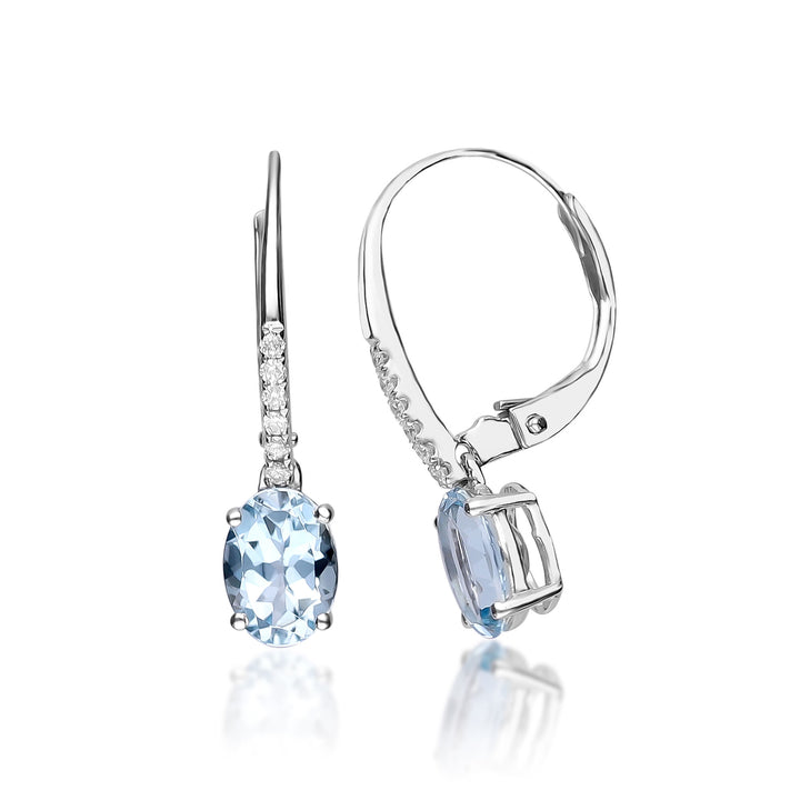 Made in 10K white gold with two 7MM x 5MM oval brilliant cut natural aquamarines and 12 round brilliant cut diamond accents.
